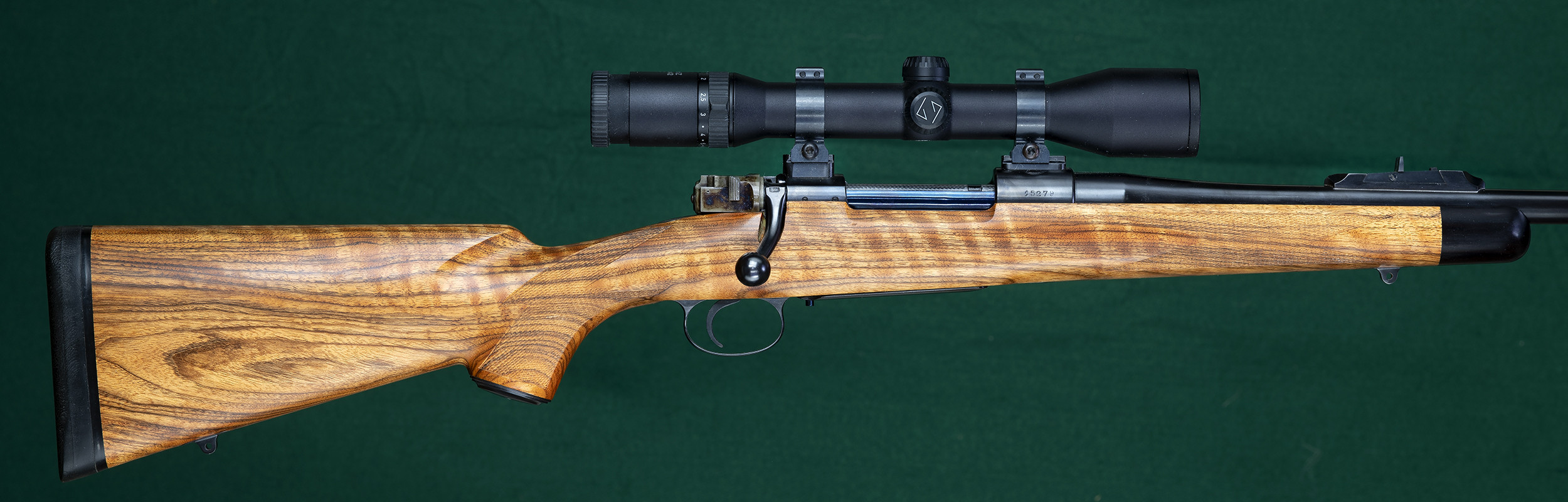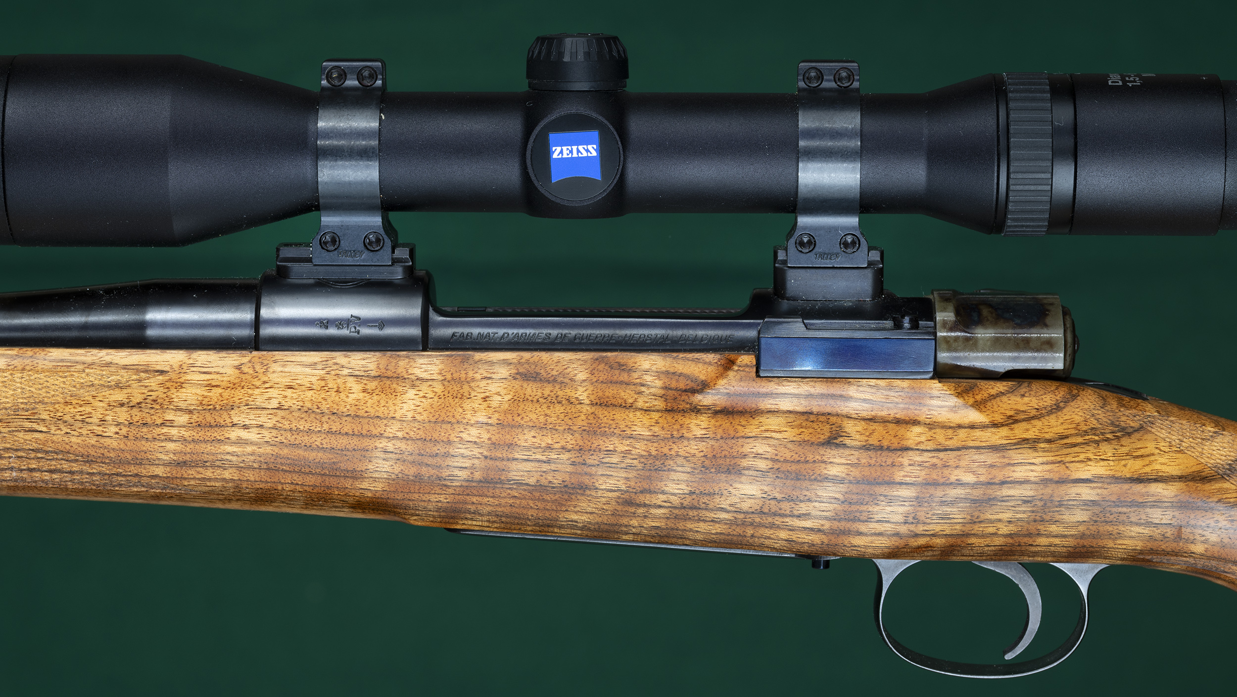 | beaded cheekpiece, and solid black Decelerator recoil pad. FN Mauser |