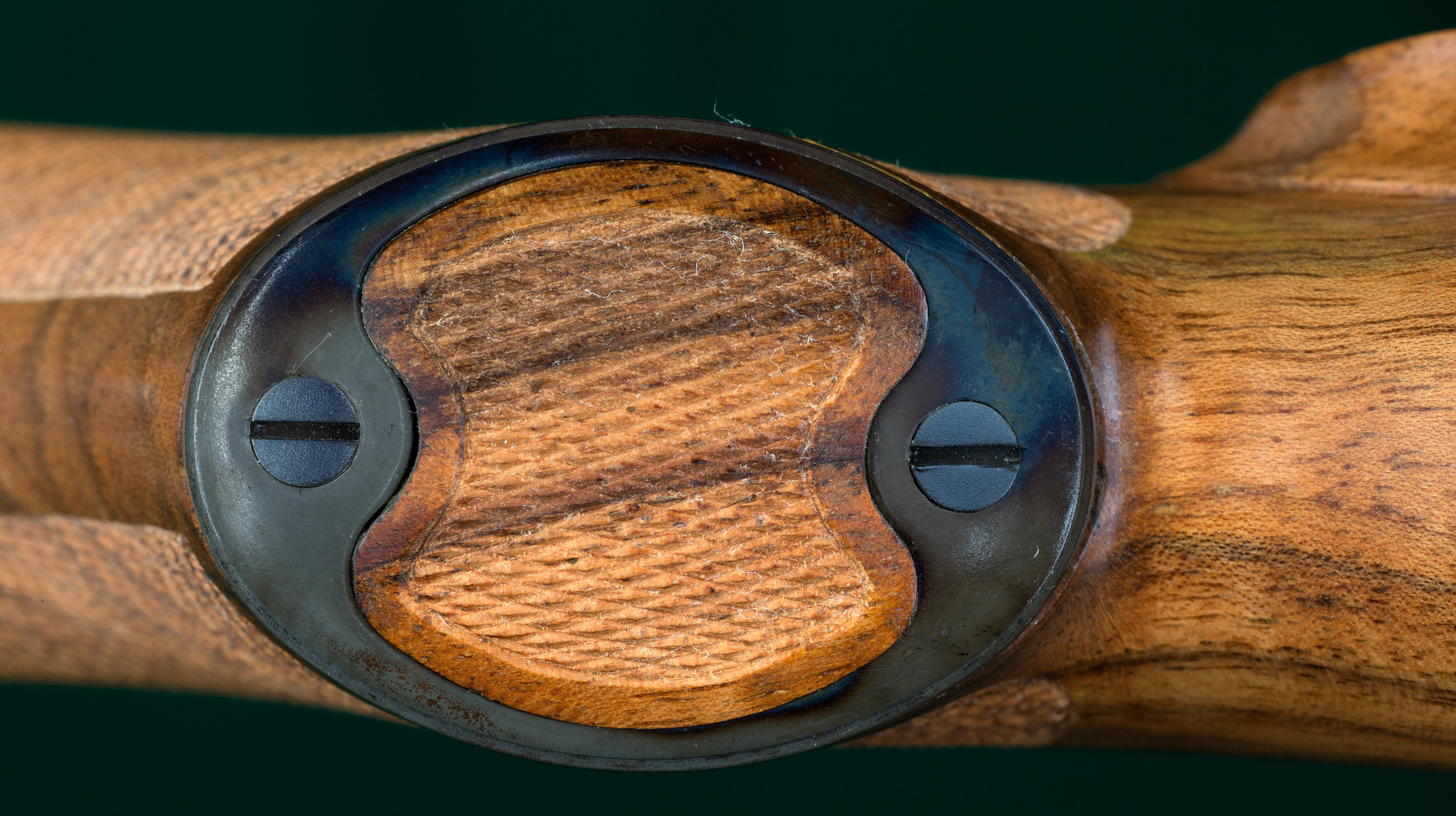 | point-pattern checkering---which wraps fully under the forend, |