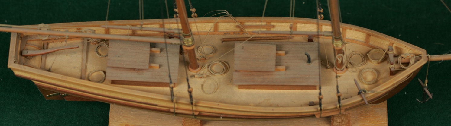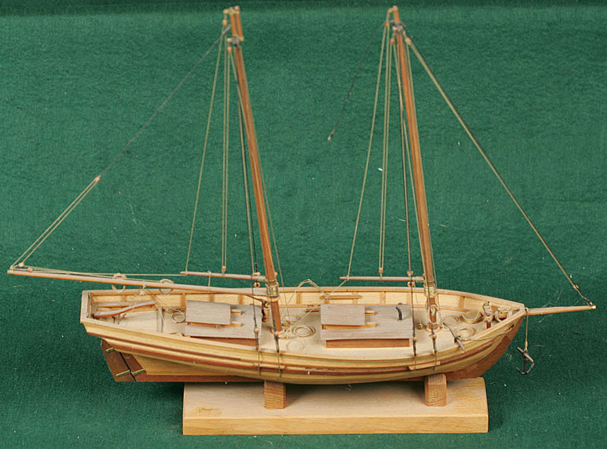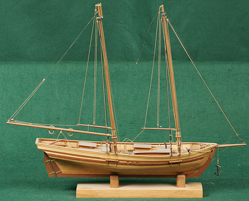 | Schooner. Scratch built of wood. 18" overall length. $1000. |