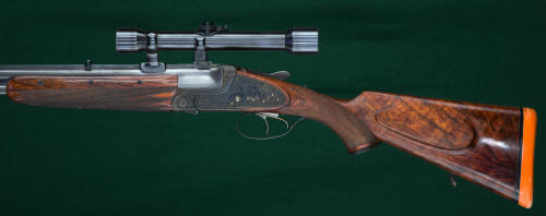| 1" rings. Figured European walnut stocks with schnabel-tipped Deeley- |