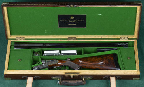 | Tight. Excellent bores. In leather trunk case with maker's label, fine Italian |