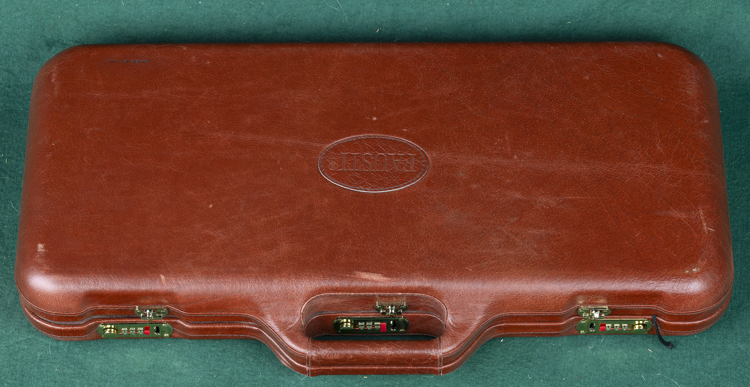 | marks on the wood. In maker's leather-covered hard case with soft |