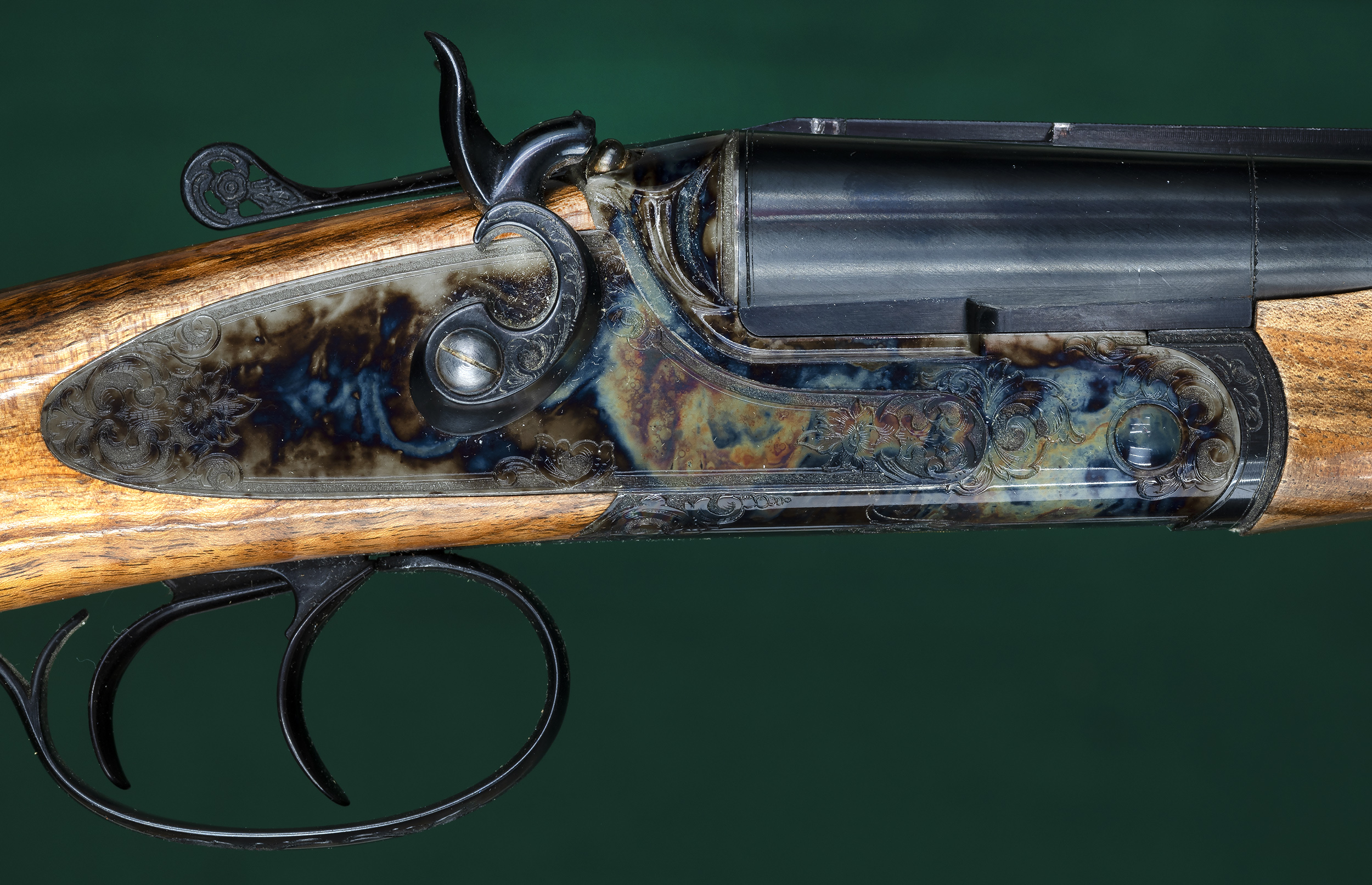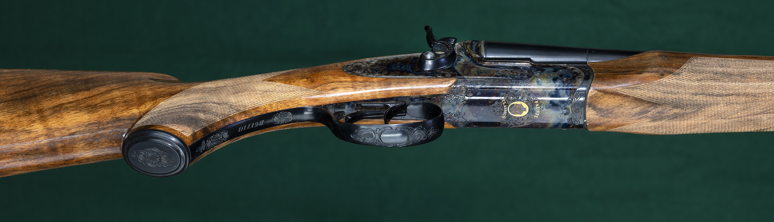 | bar-action sidelock scroll engraved by Muffolini, with sculptured fences, |