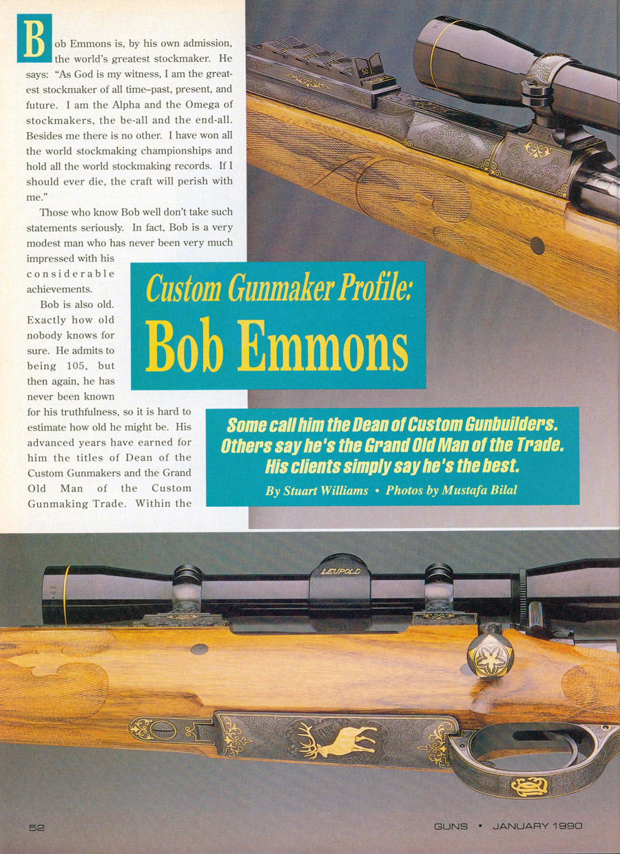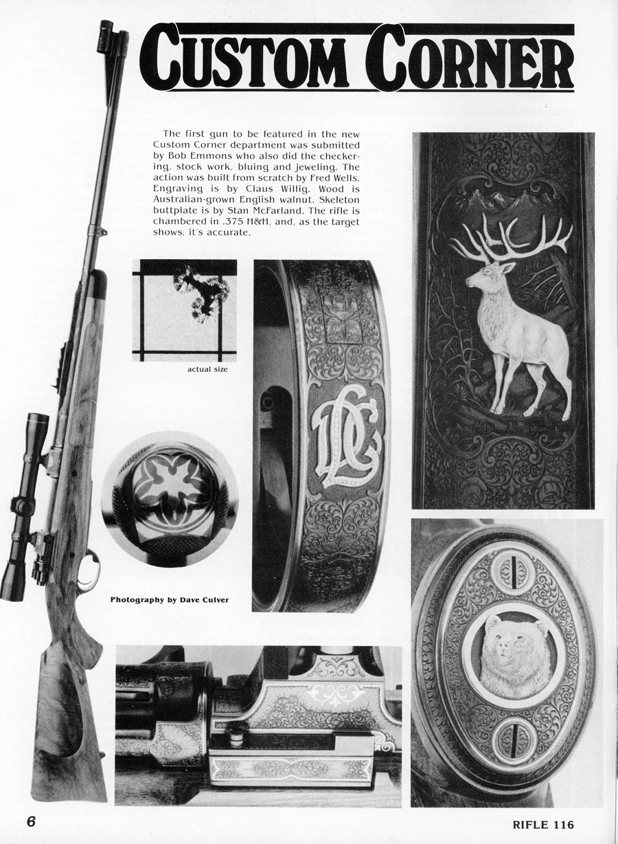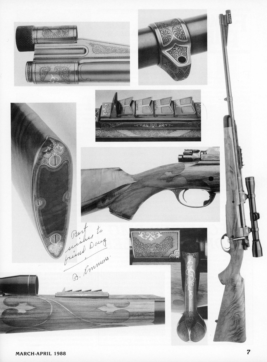 Literature: Featured in "GUNS" Magazine, January 1990; "Game Country", March/April 1989; and "Rifle", March/April 1988. All 3 publications, reproduced in order below, were signed by Bob Emmons and included with the rifle.