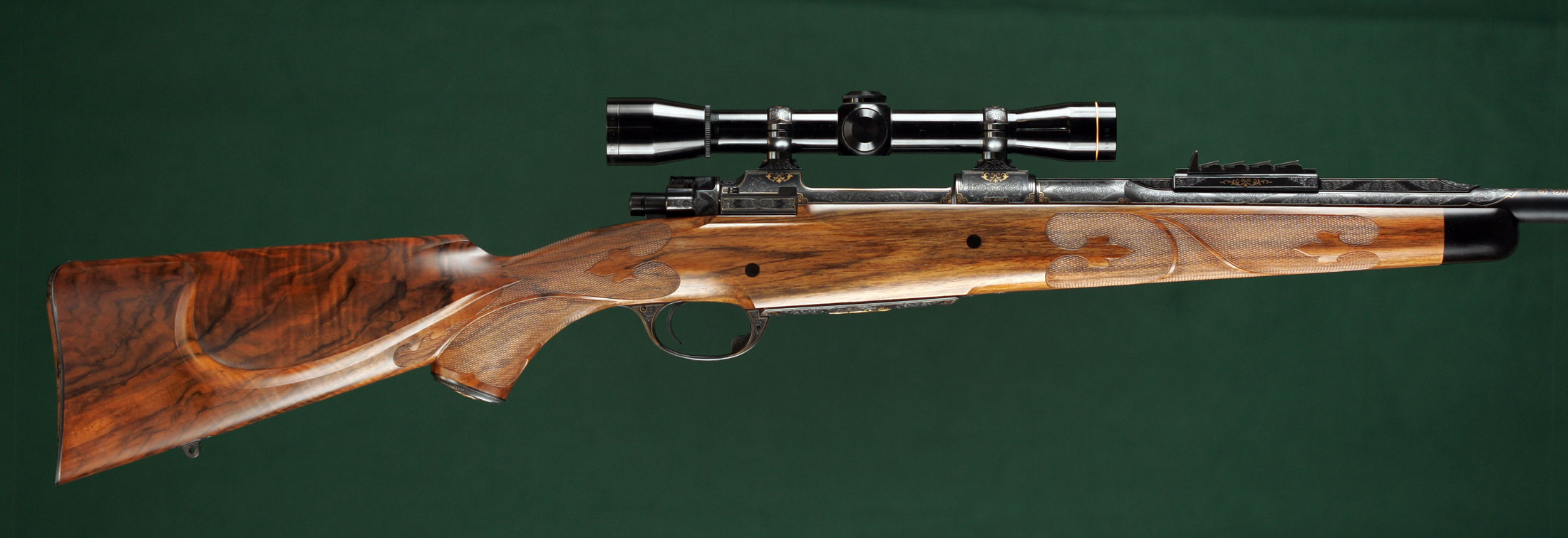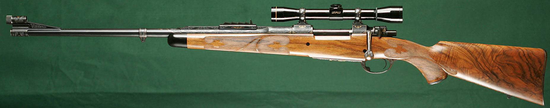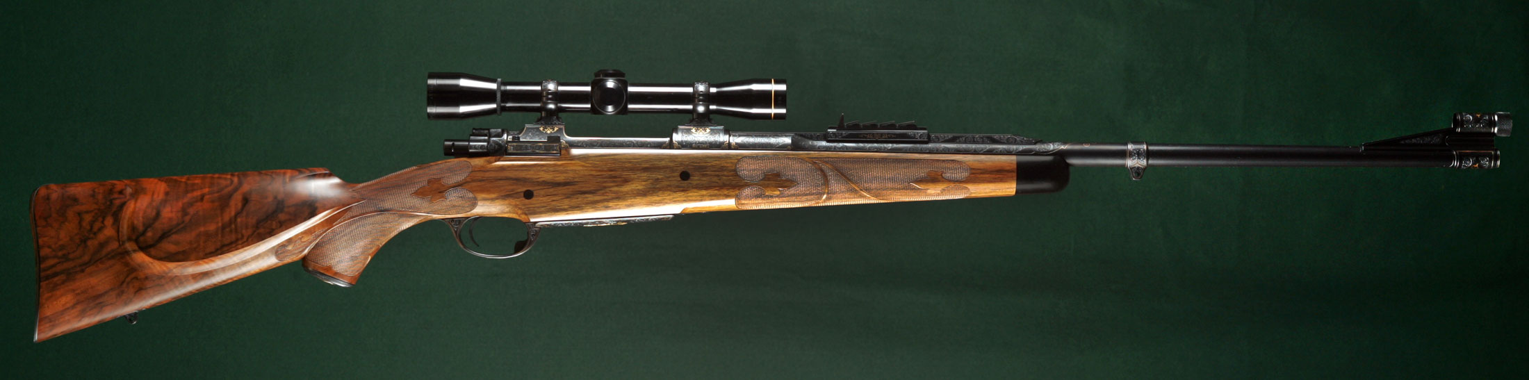 Fred Wells .375 H&H on Bench-Made, Left-Hand, Magnum Mauser Double Squarebridge Action. Engraved by Claus Willig.