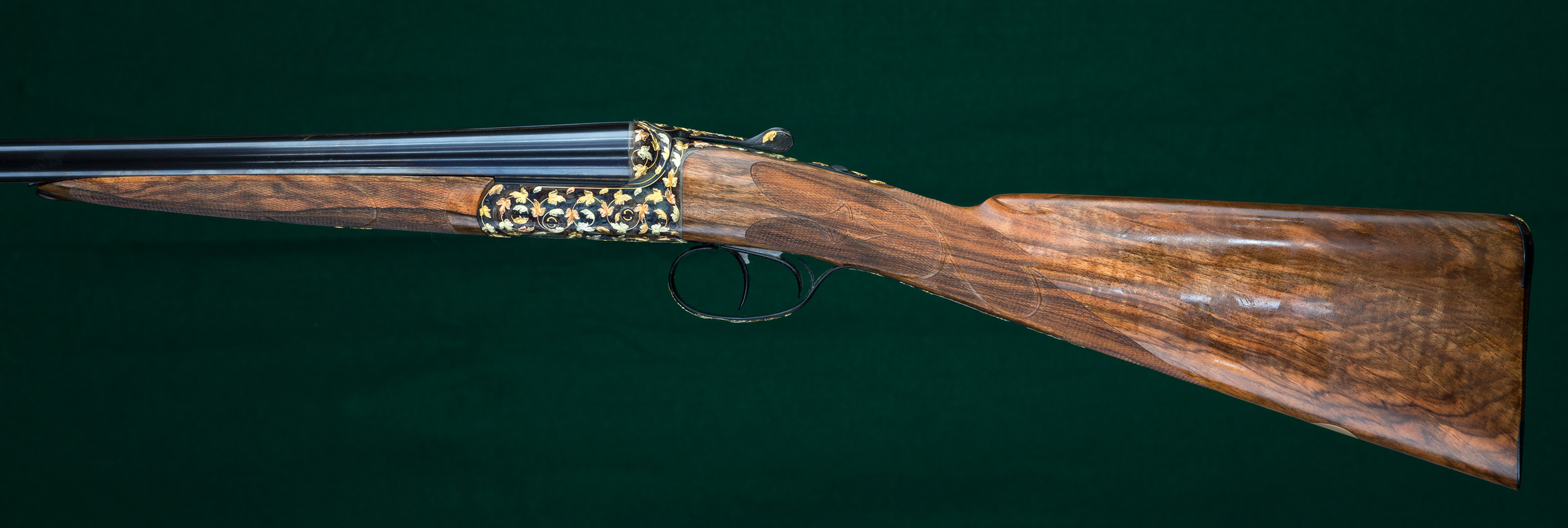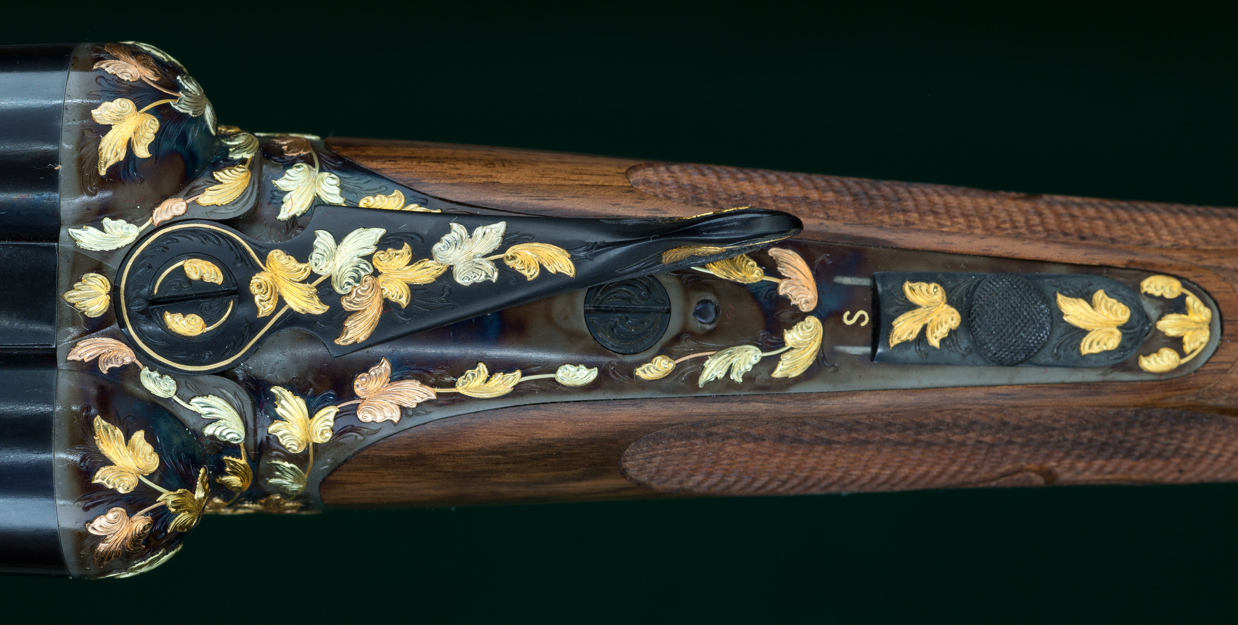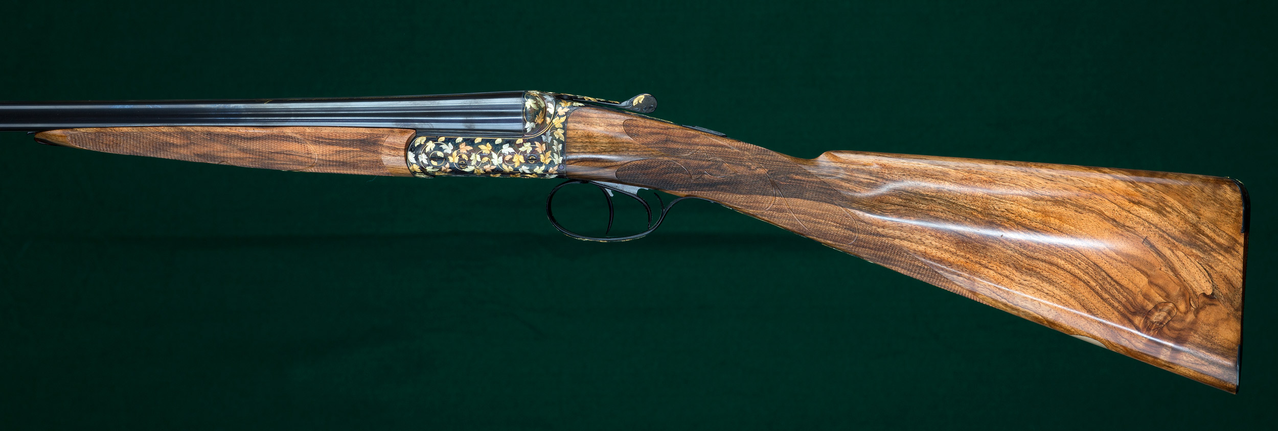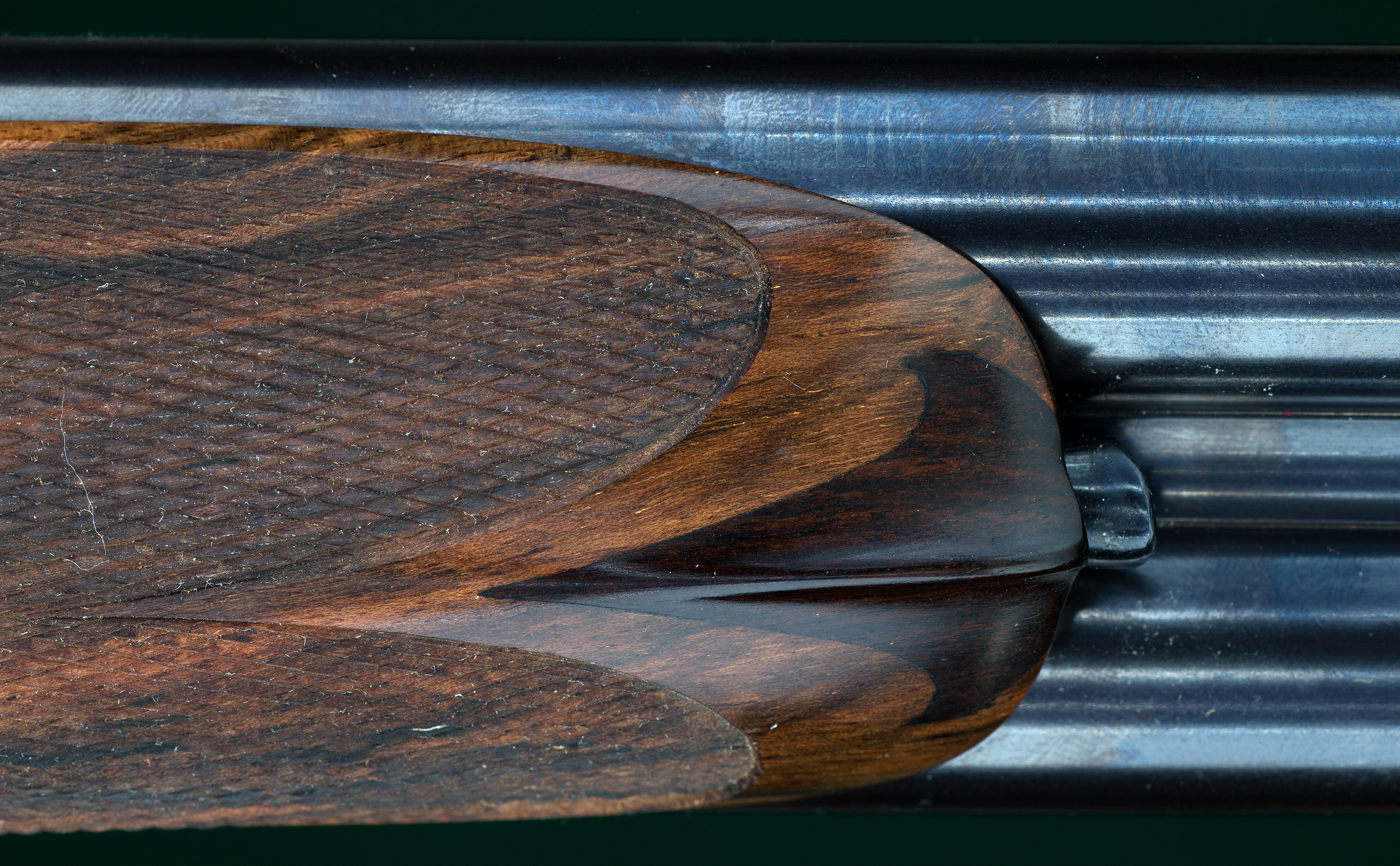 | | cast off. Fully figured Teyssier French walnut stocks with fluted-horn-tipped |