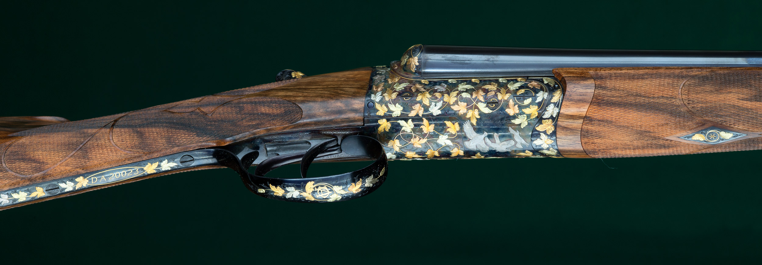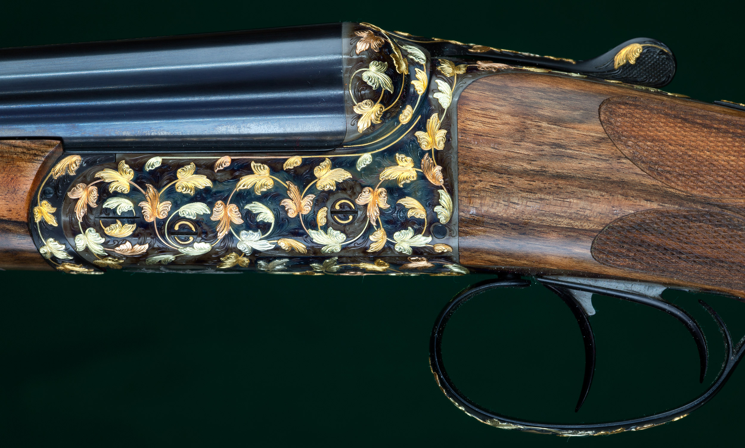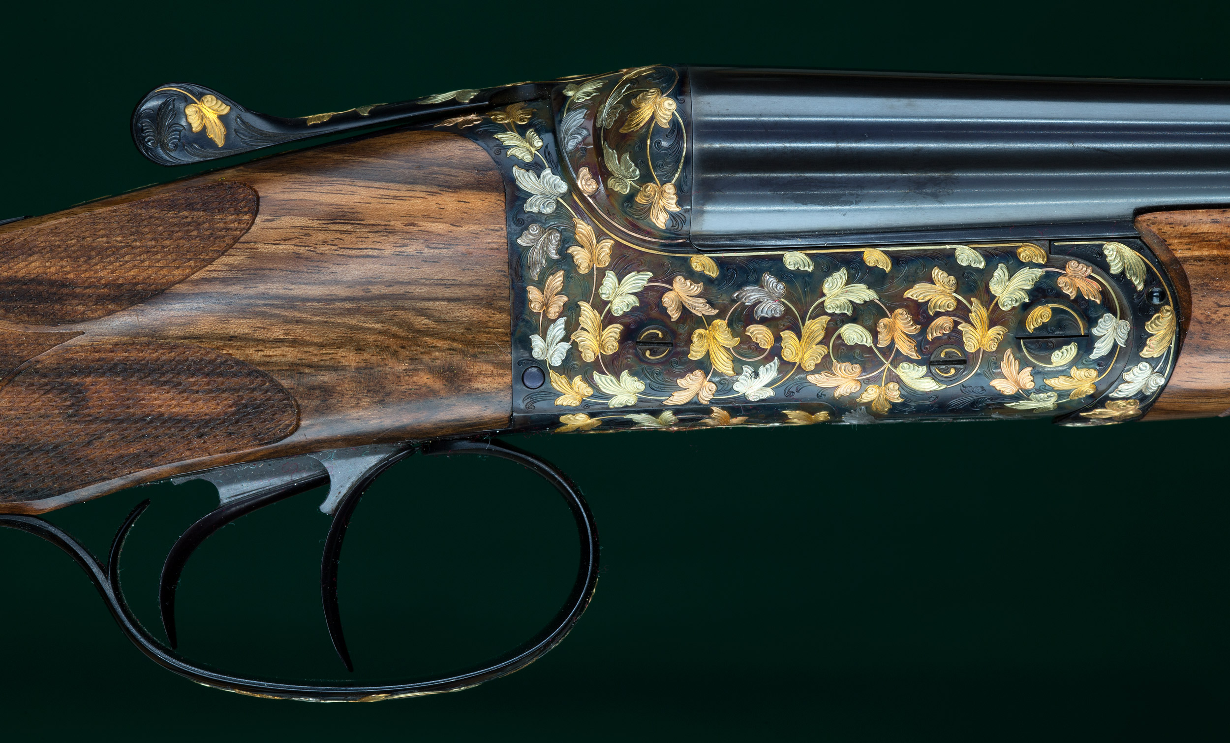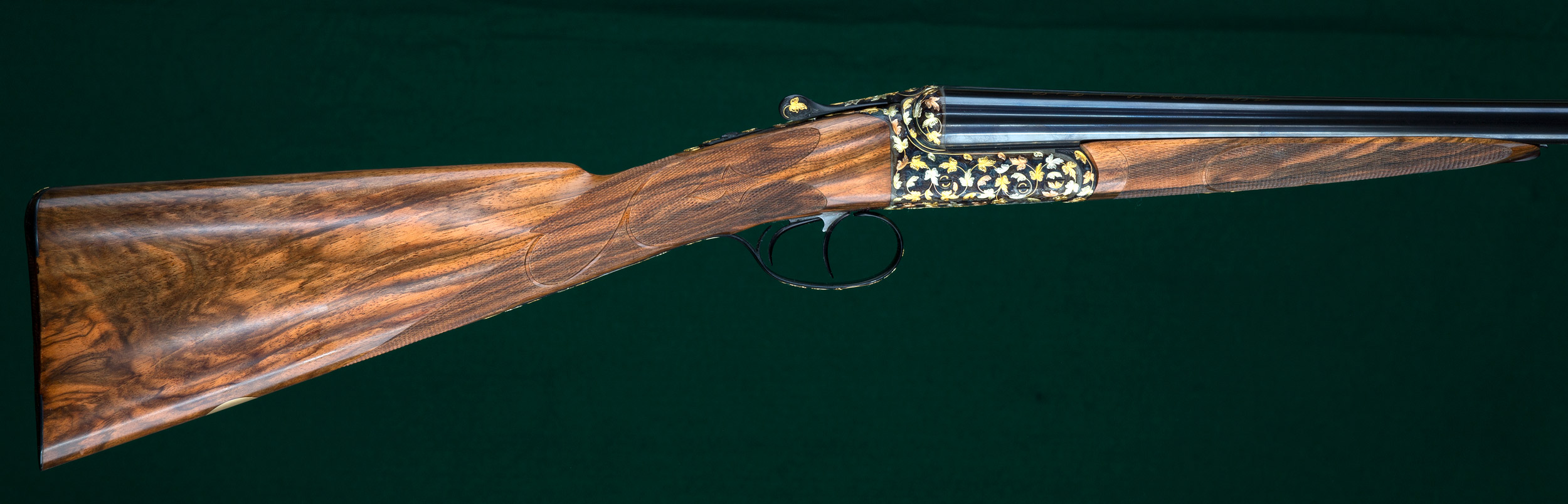 | | cast off. Fully figured Teyssier French walnut stocks with fluted-horn-tipped |