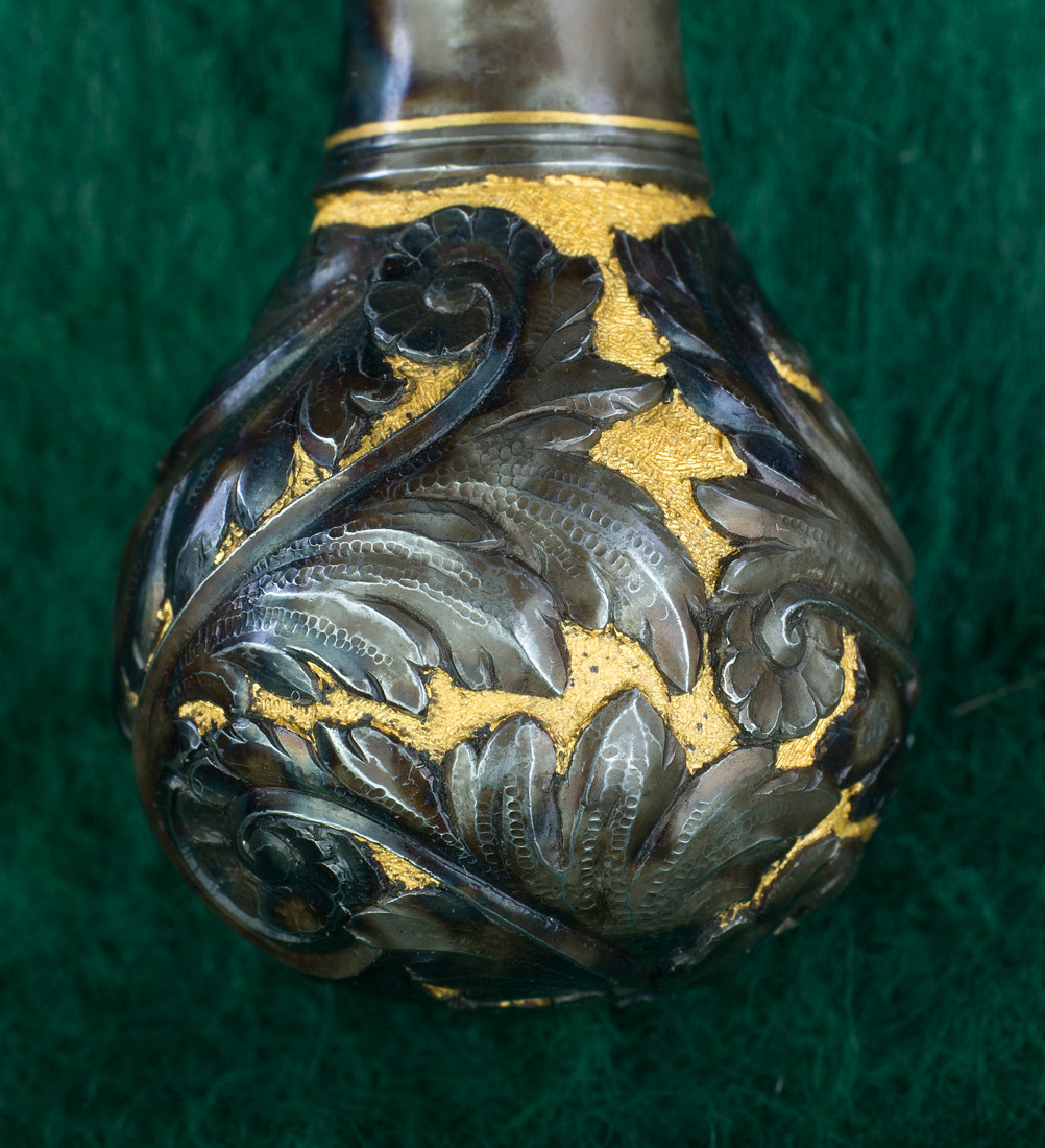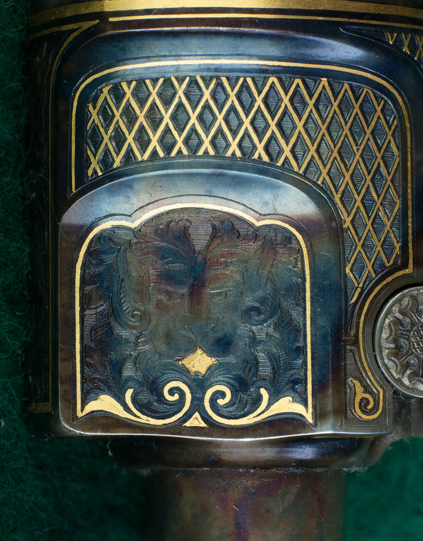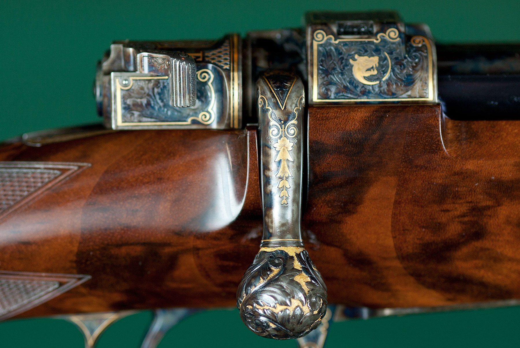 Griffon on top of cocking piece Carved and gold damascened bolt knob
