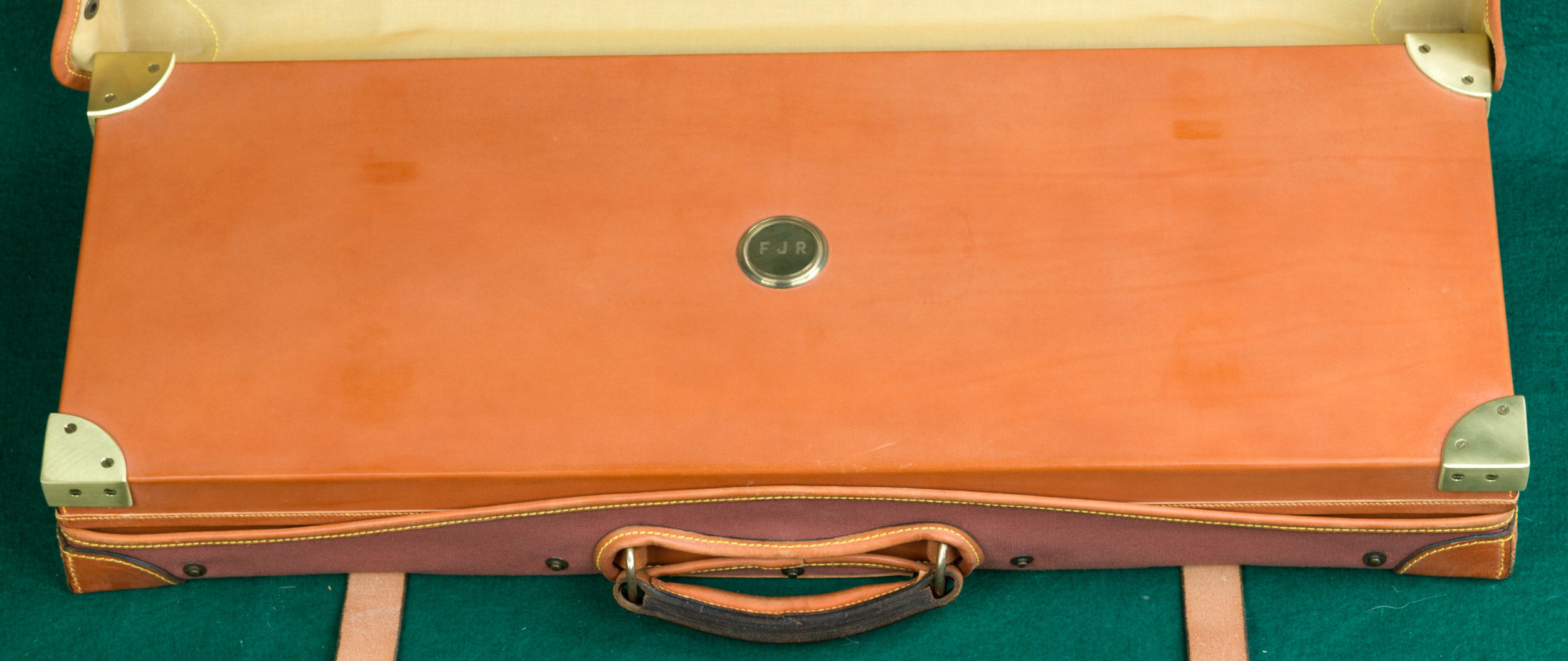 | bearing the script initials FJR, rear swivel and Silvers solid red recoil pad. |
