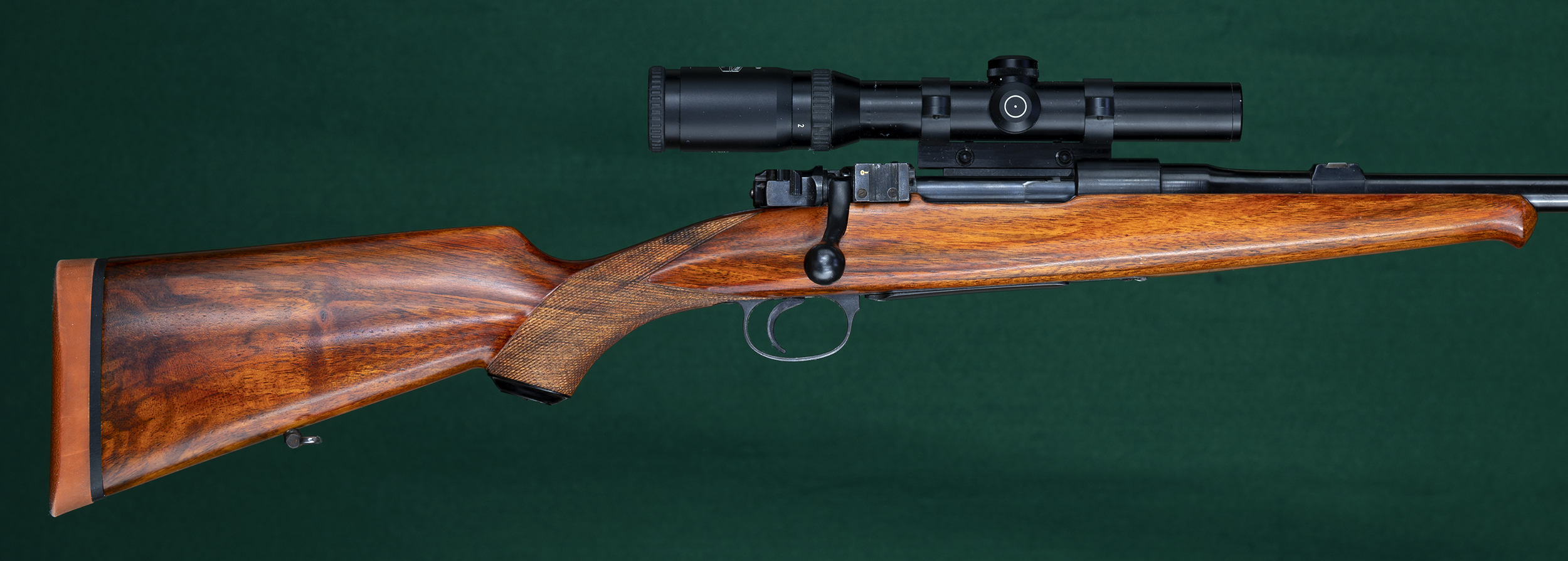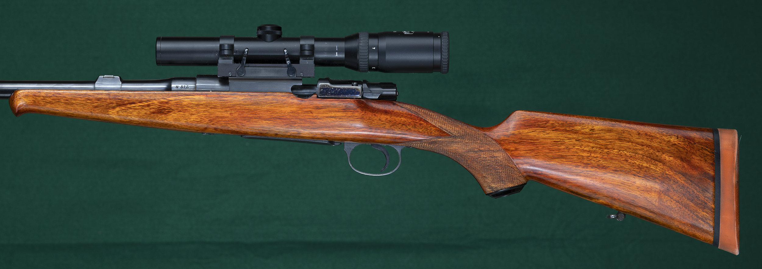 | | solid red Decelerator recoil pad. Controlled-feed Mauser action (possibly |