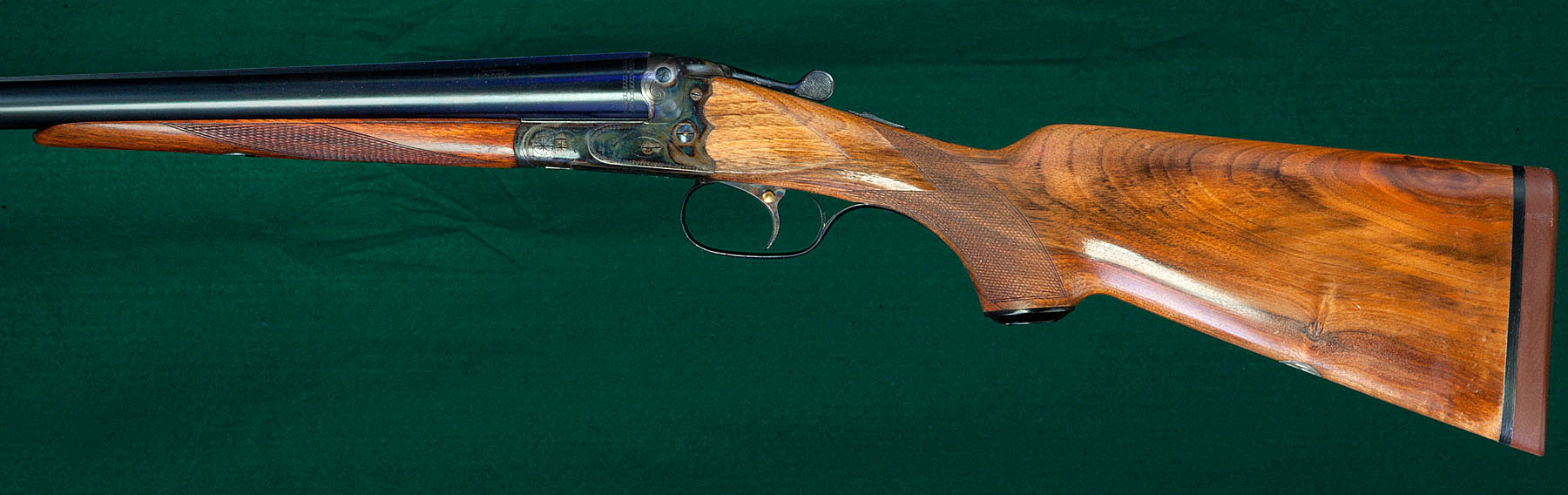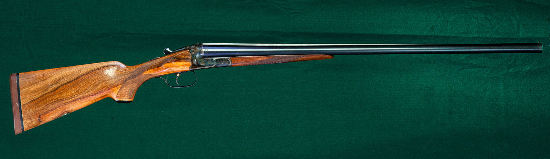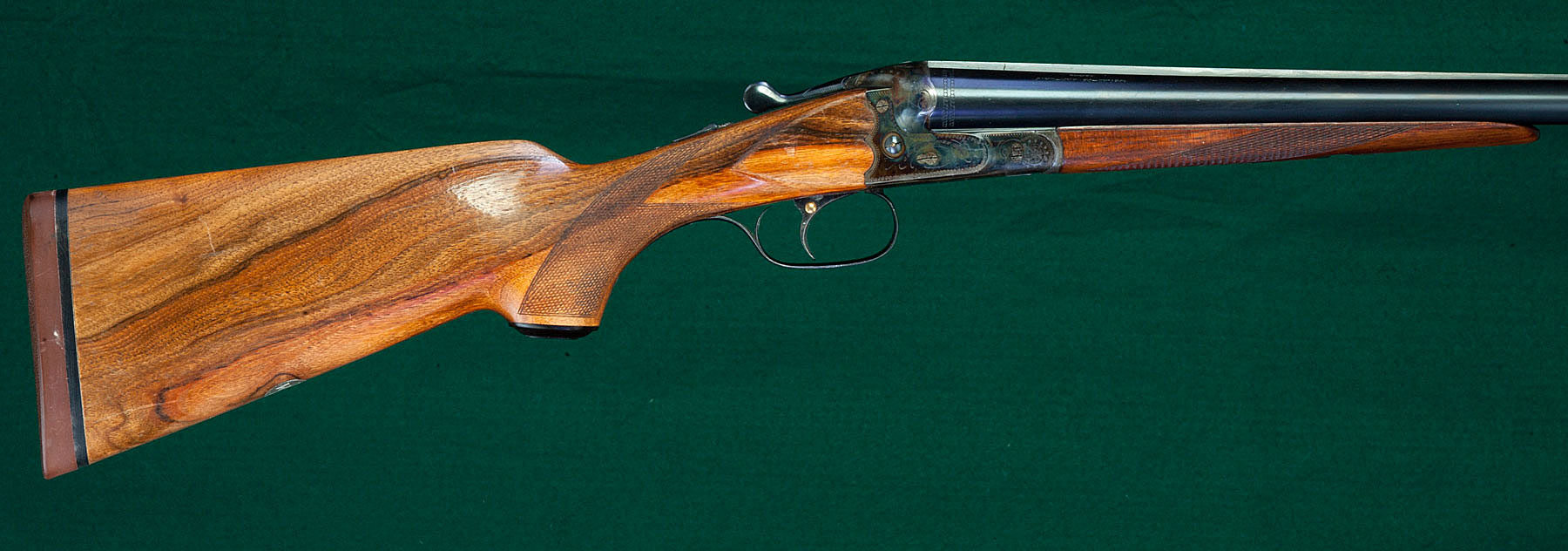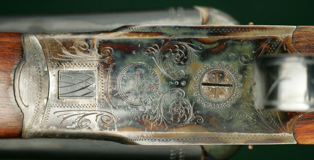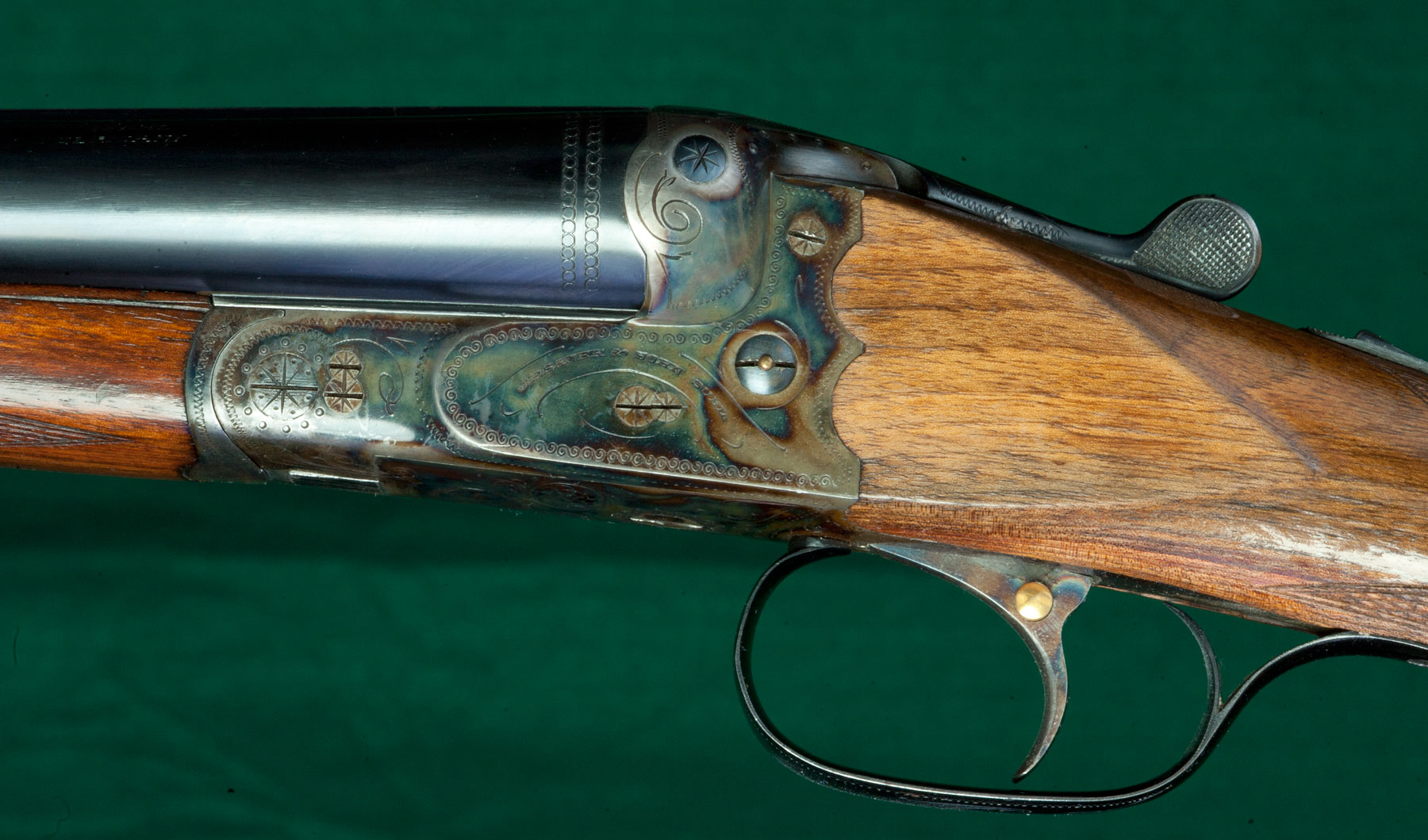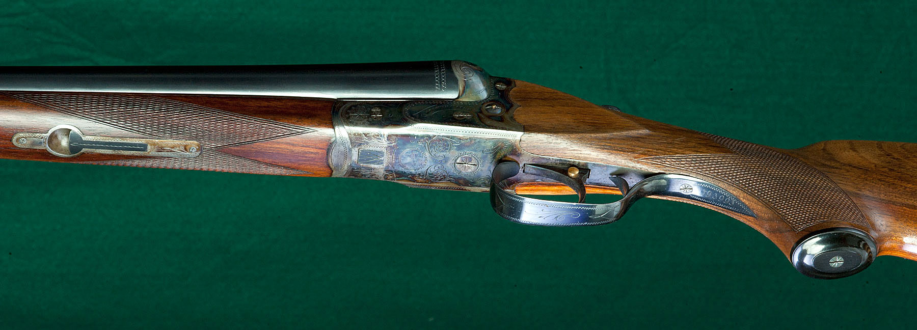 | engraved, scalloped, casehardened receiver with Greener crossbolt, sideclips |