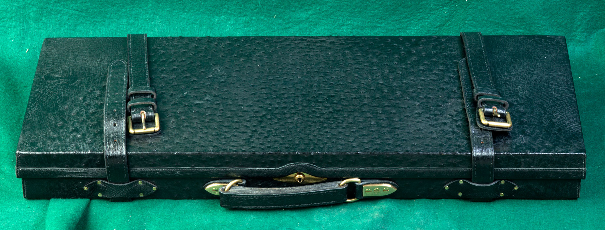 Weight: 7lbs, 7oz. London proofed for 2 3/4" Magnum cartridges in 1986. Engraving completed in 1987. Appears unfired. Retaining 99%+blue. Mechanically excellent. Tight. Excellent bores. In Casecraft oak and black ostrich case, lined with light green velvet. Fitted with chamber brush, two turnscrews, soft brush, rosewood cleaning rod, oil bottle, grease bottle, patch bottle, spare strikers in striker bottle, and snap caps.