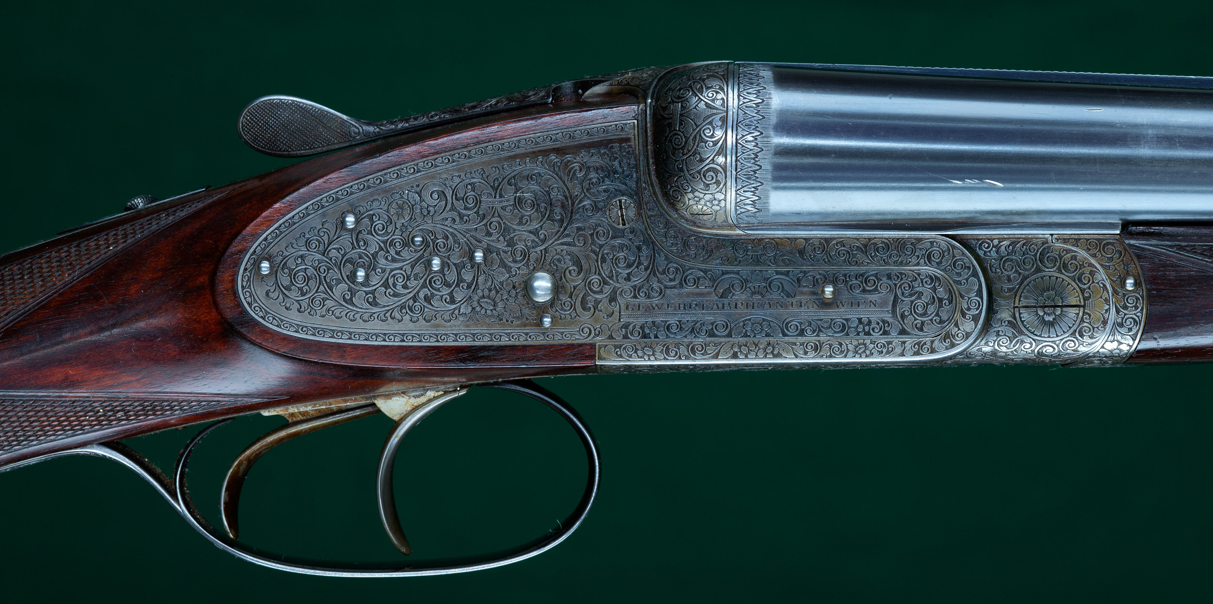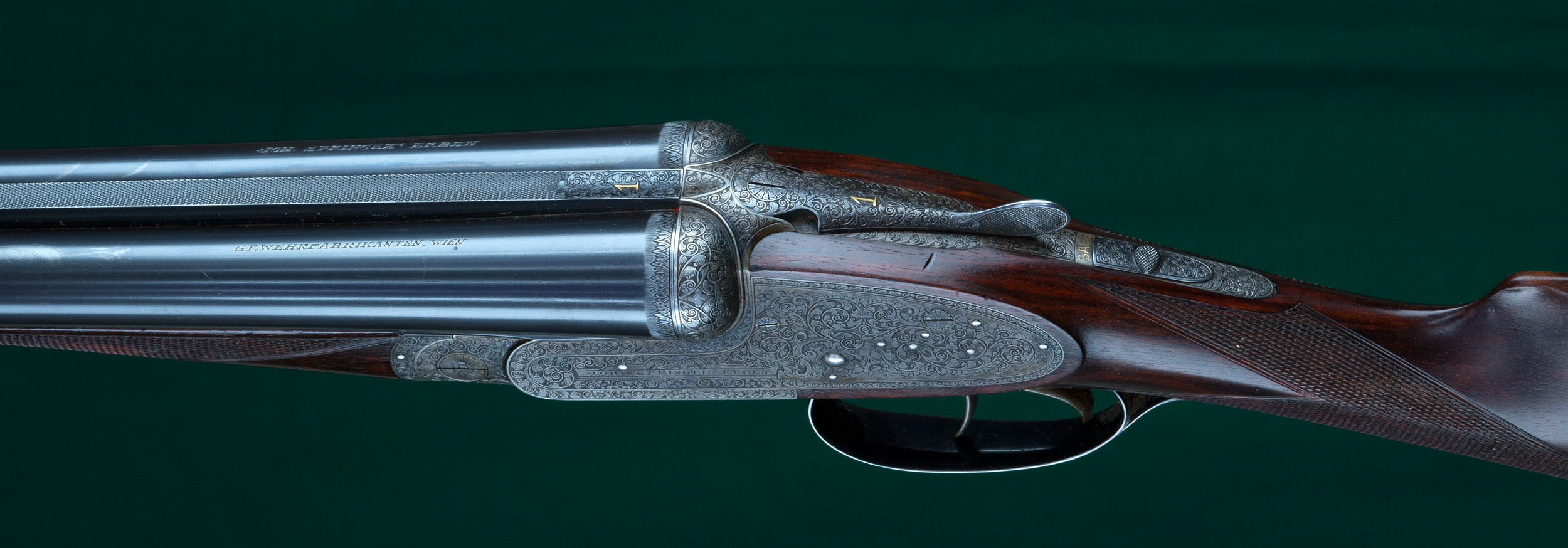 Johann Springer, Vienna Model 40 Matched Consecutive Pair Sidelock Ejector 12 Gauge, 2 1/2" Chambers