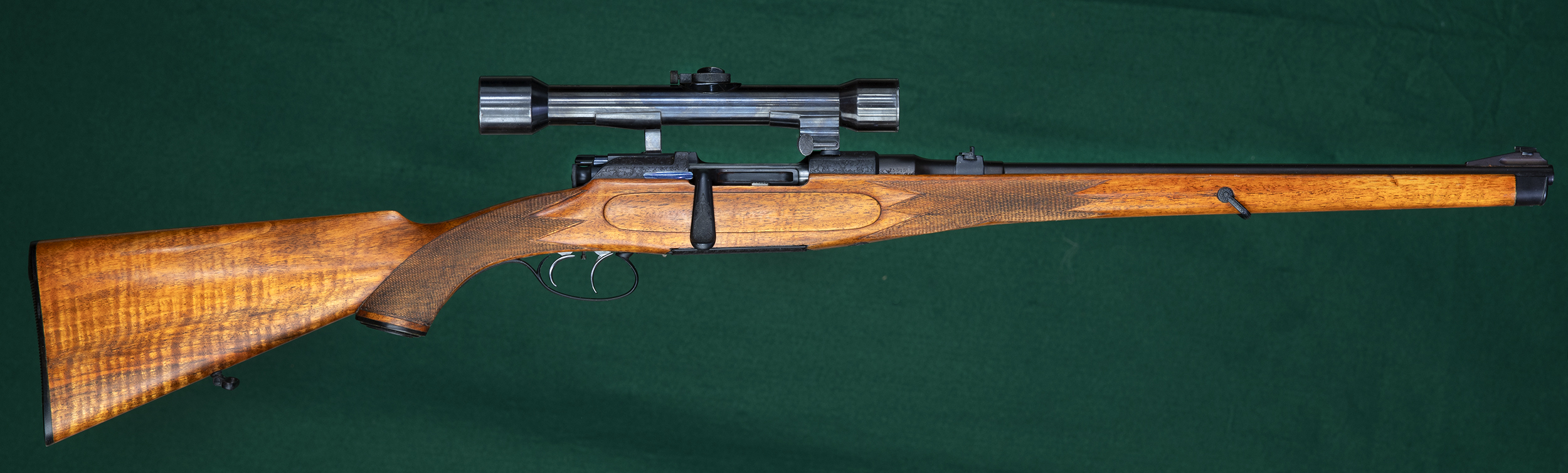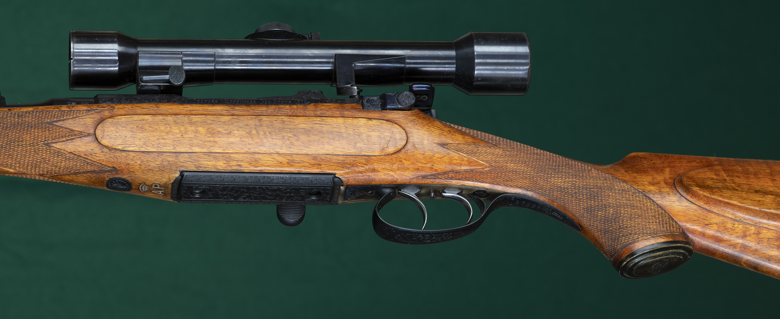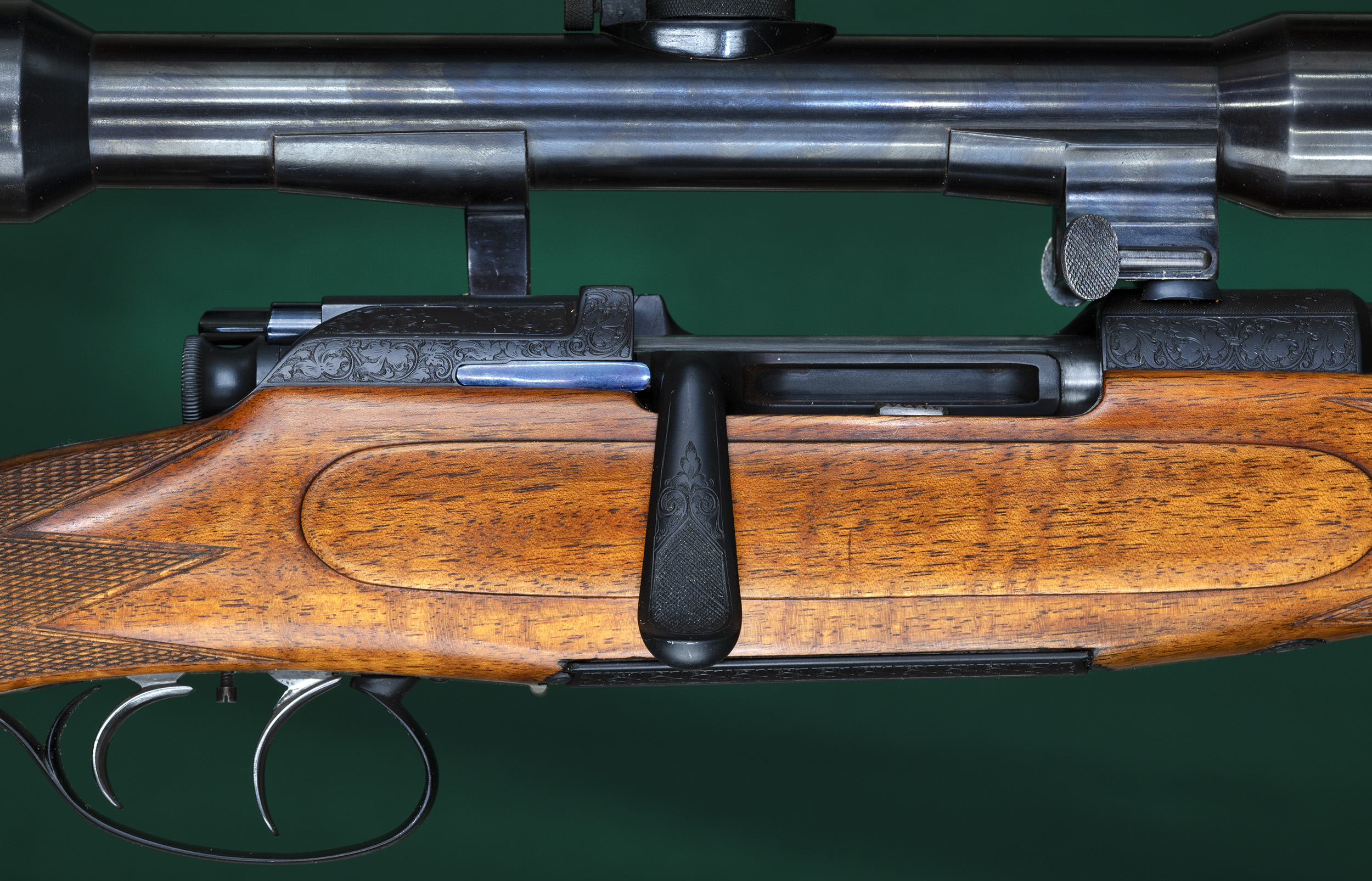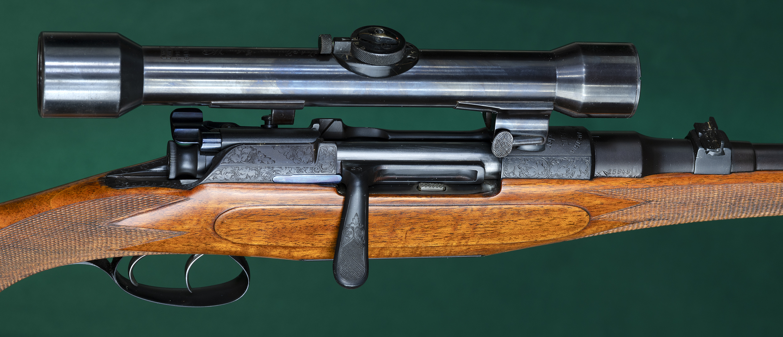| | Mauser-type safety with S inlaid in silver. Zeiss Zielvier scope with duplex |