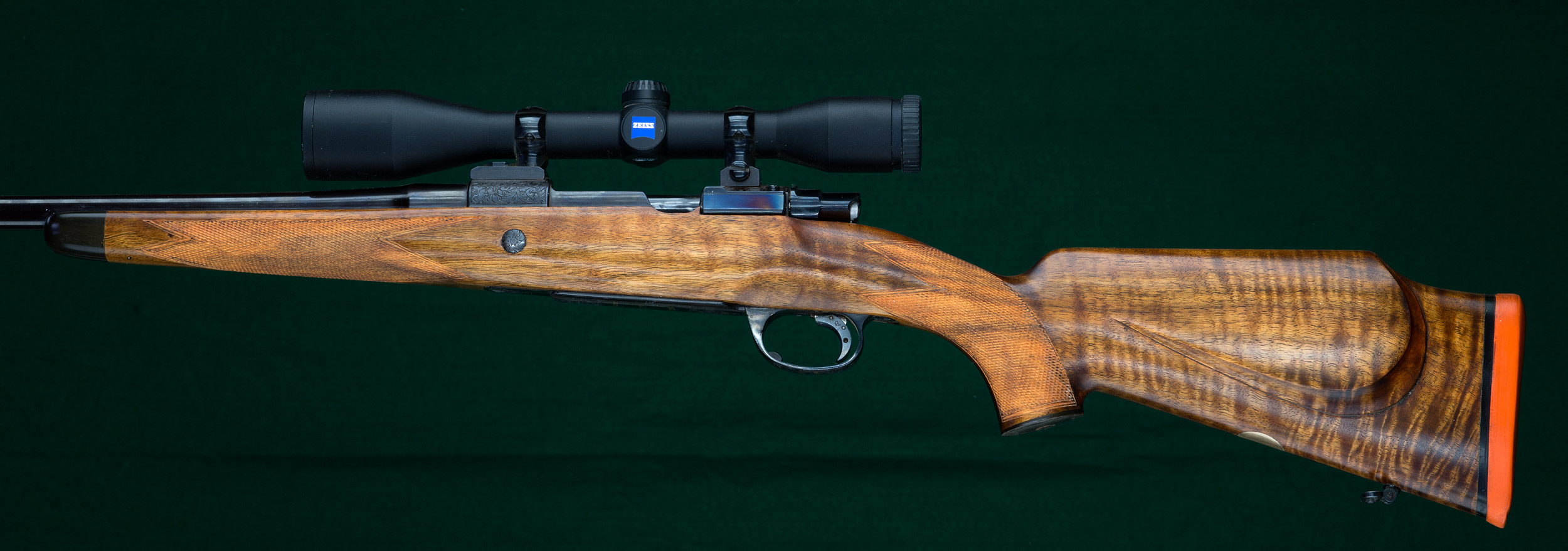 | | Silvers red rubber recoil pad. FN Mauser action with tang-side safety, fire- |
