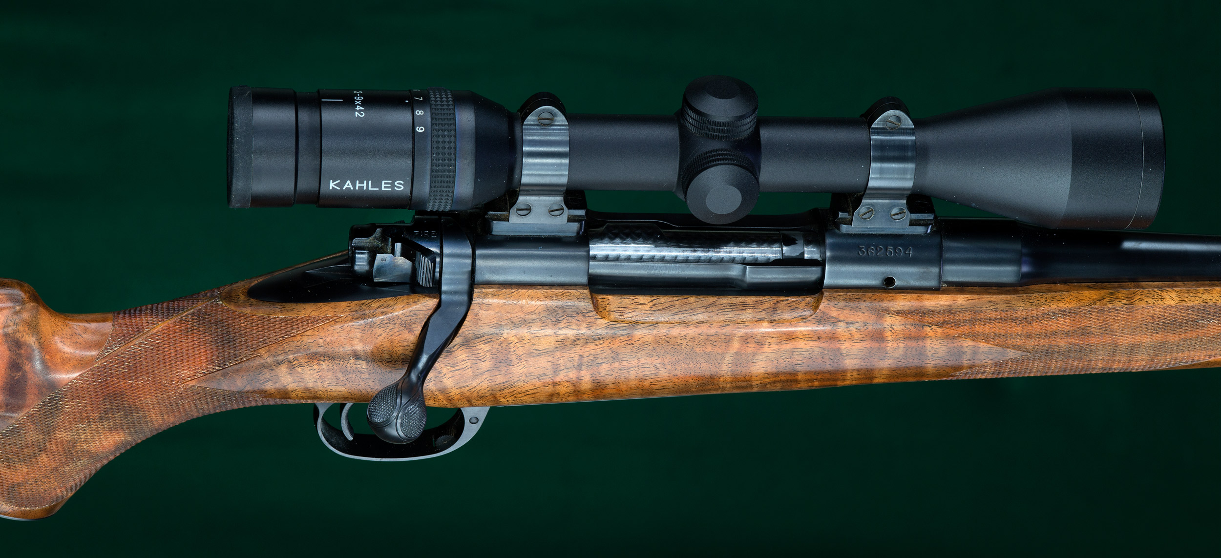 | | Kahles 3-9x42mm scope with bold 4A duplex reticle on Talley fixed mounts. |