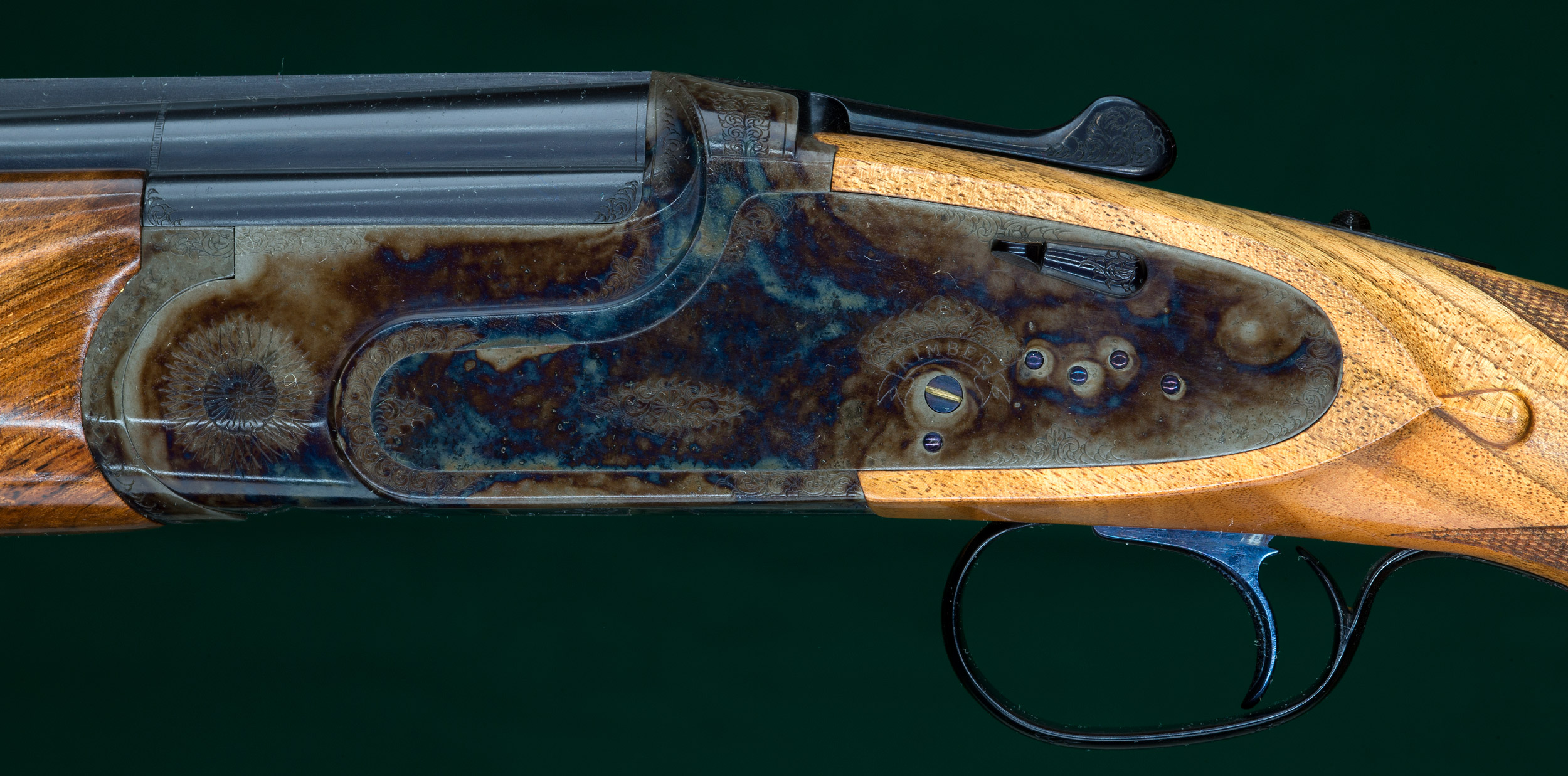 | engraved, casehardened action with hand-detachable sidelocks, automatic |