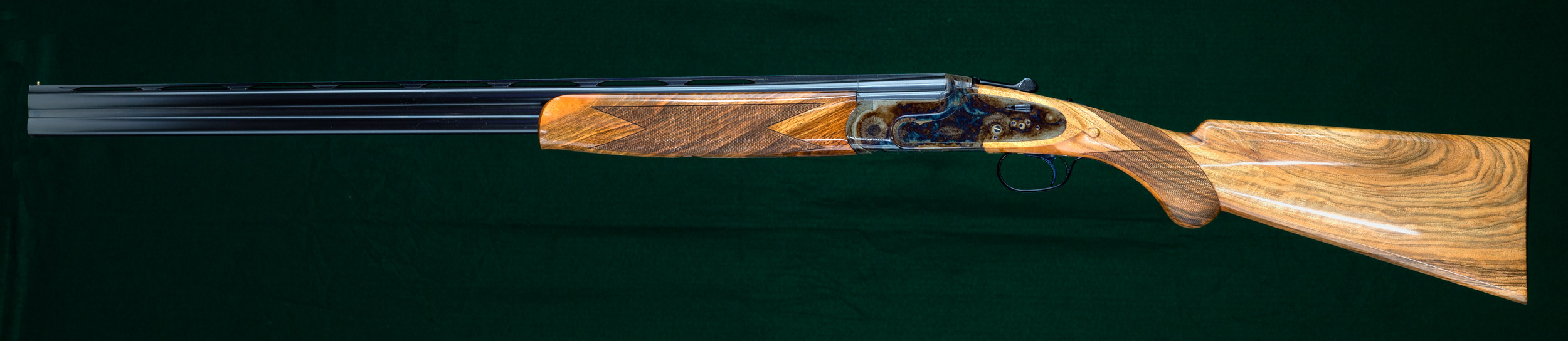 | 28" O/U matted vent rib barrels with notchless interchangeable choke tubes. |