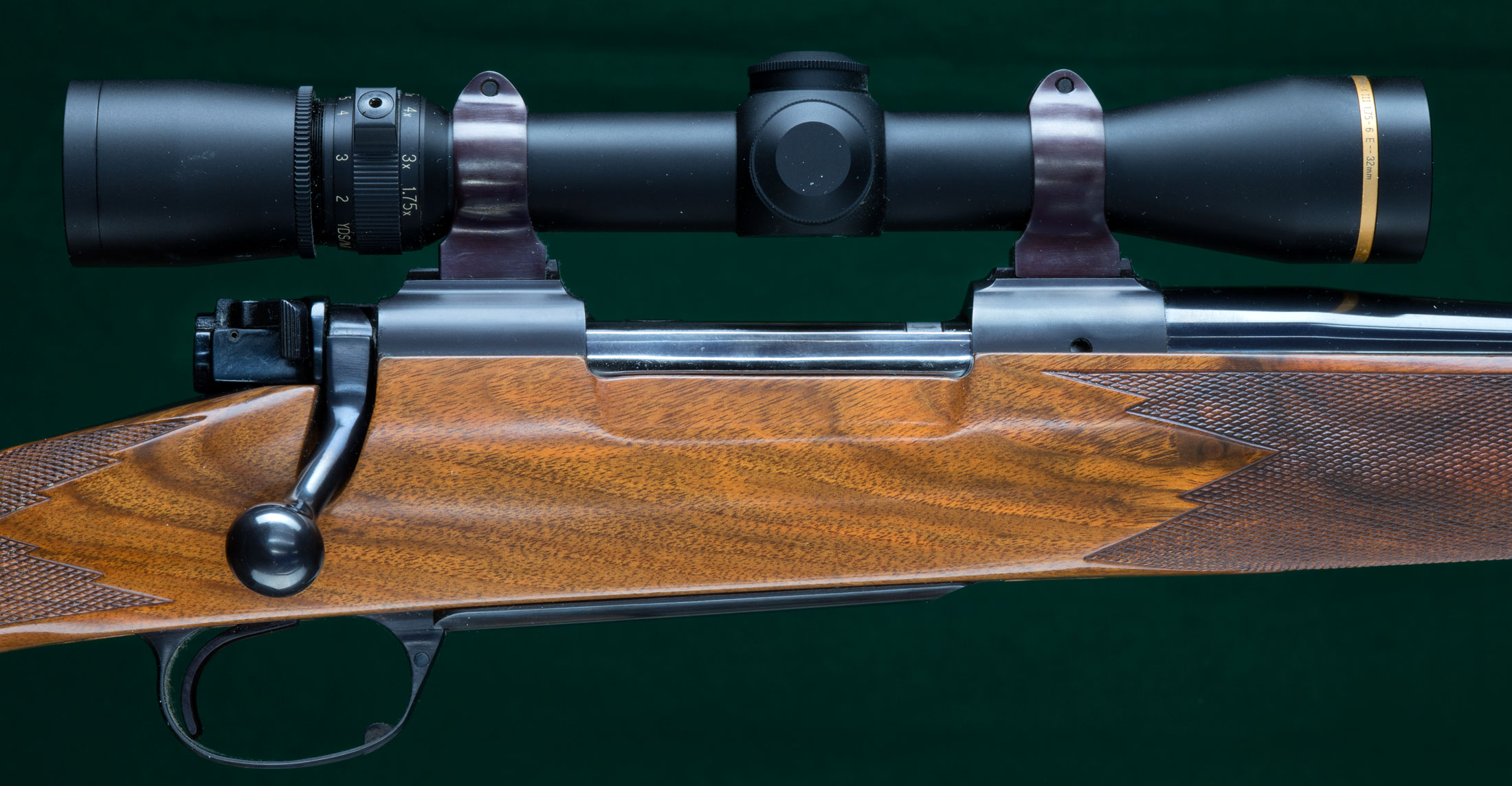 | fixed rings fitted directly to receiver dovetails. Pull: 13 5/8". Weight: 8lbs, |