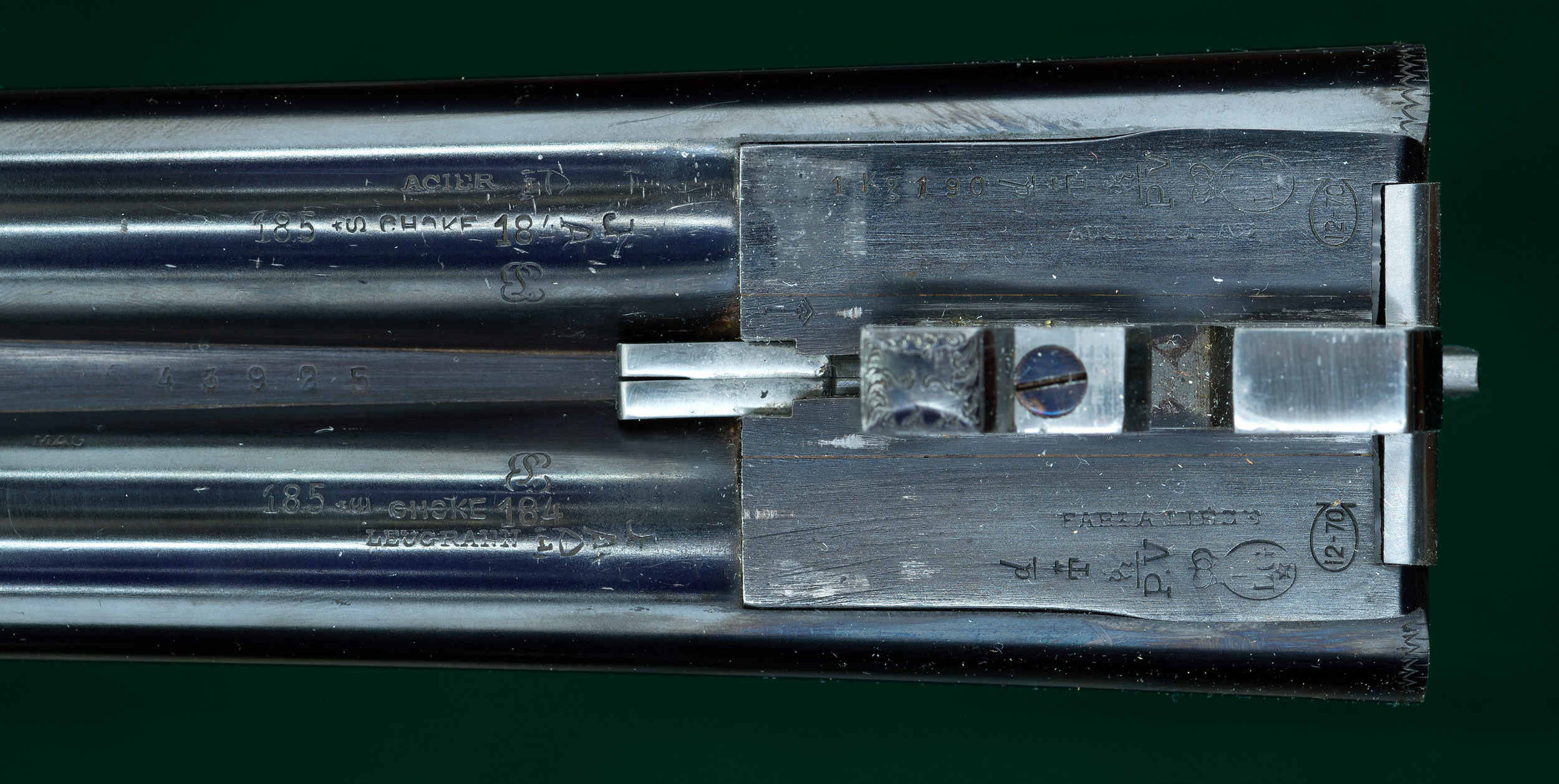 | 26" SxS barrels with hand-filed rib and twin fine bead sights choked |