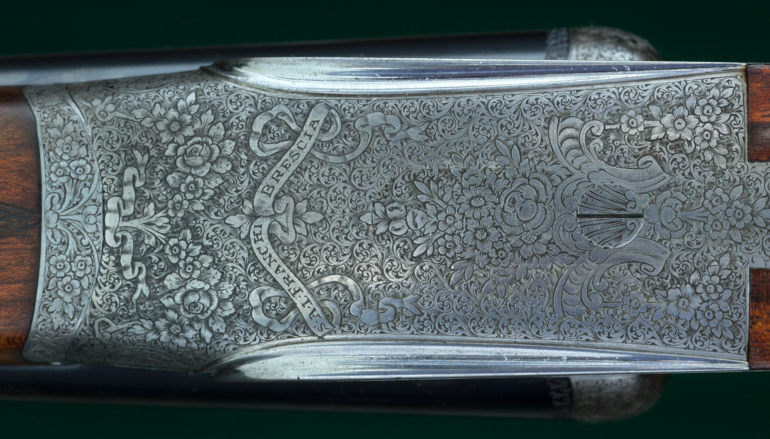 | | pancake cheekpiece. Full coverage fine continental rose & scroll engraving |