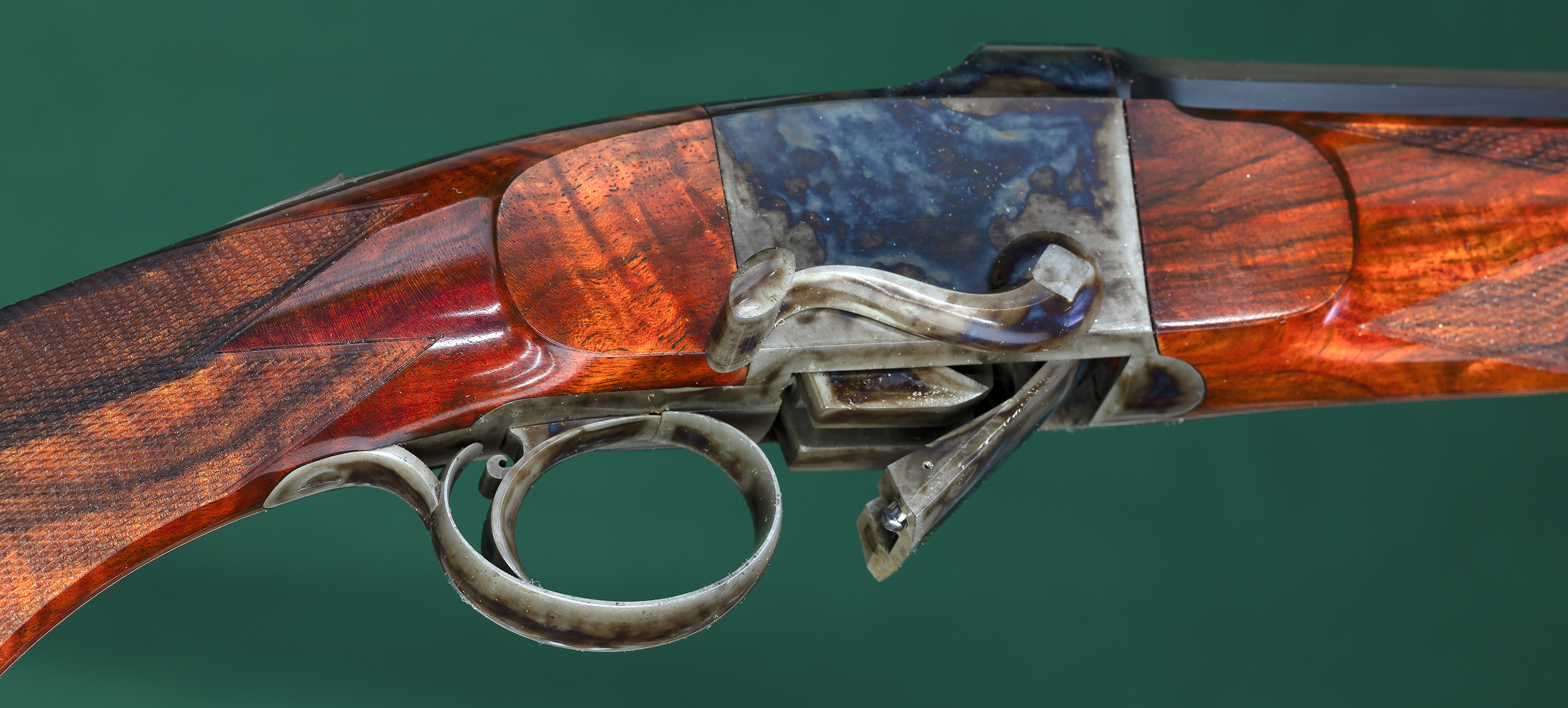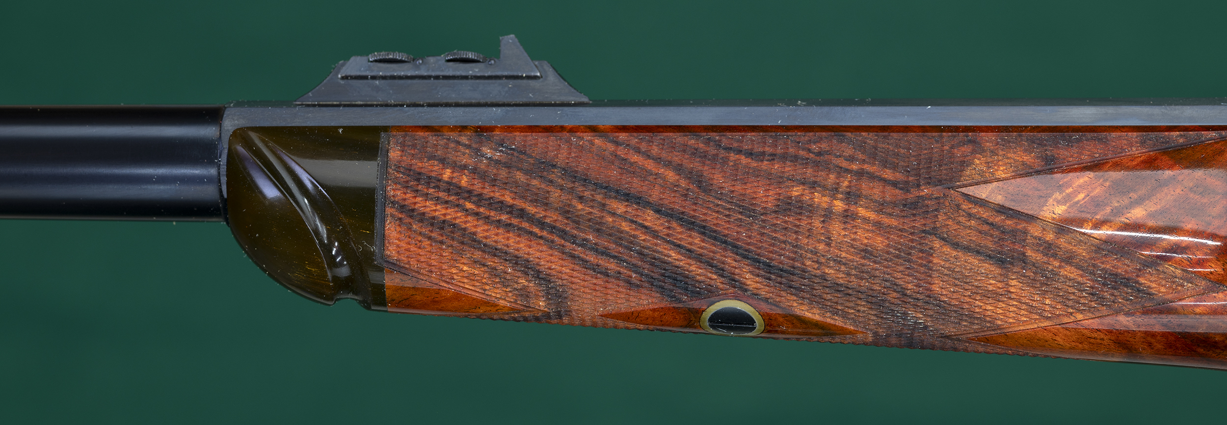 | checkered horn buttplate. Ruger No.1 action extensively reworked by John |