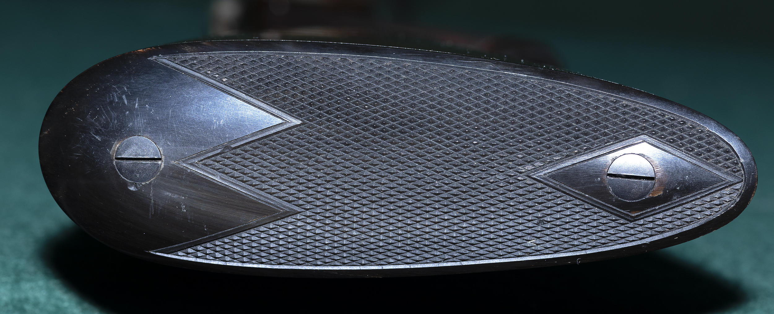 | classic point-pattern checkering with mullered borders, horn pistol grip cap, |
