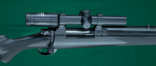 | triggerguard. Schmidt & Bender 1.1-4x24 Zenith illuminated scope with |