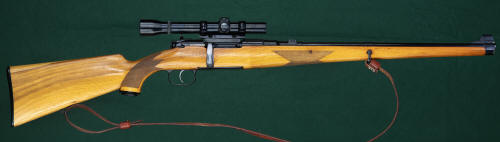 | Full Mannlicher stock to the muzzle with steel forend cap, full-band swivel |