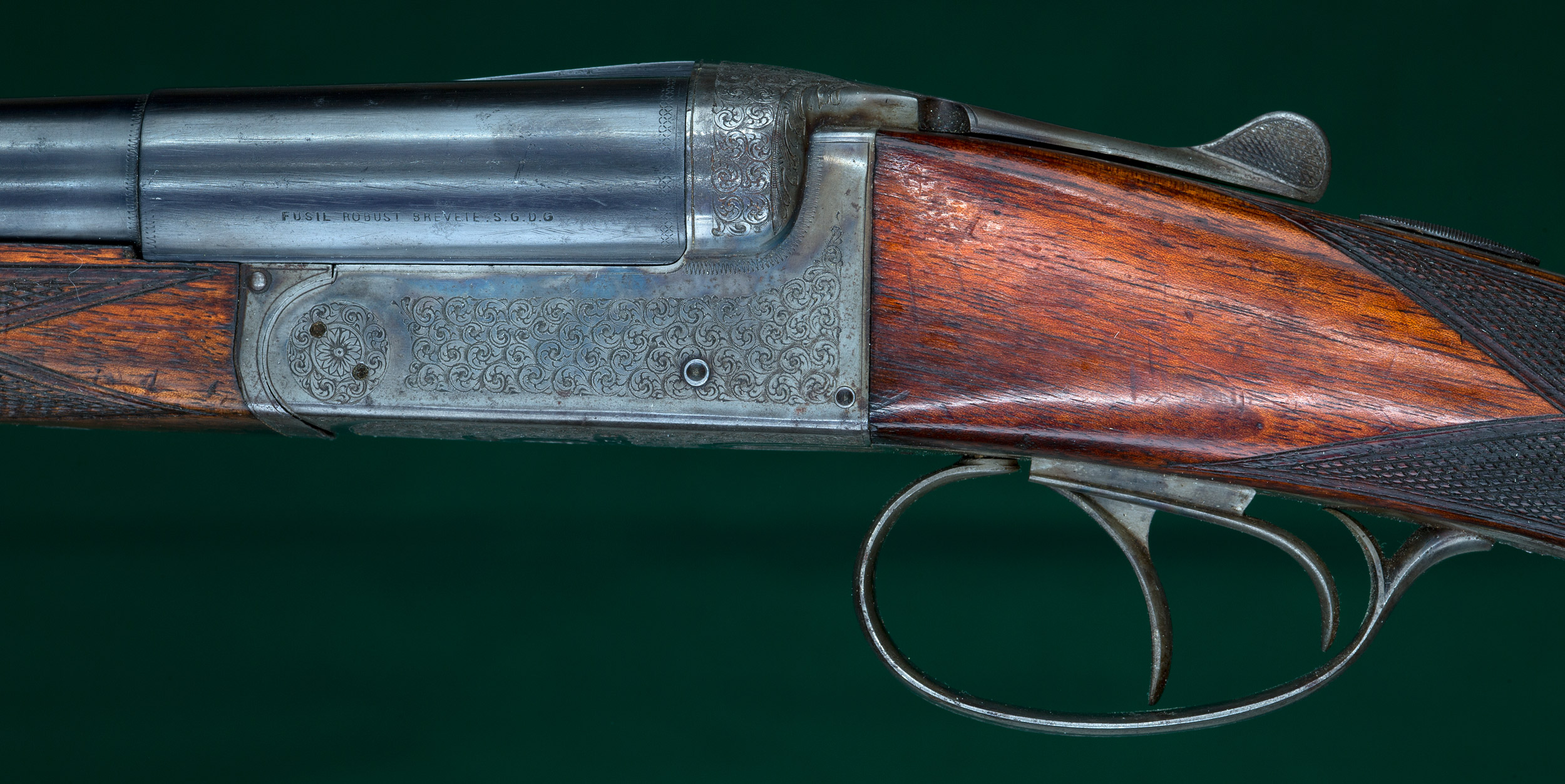 | leather sling built into the toe. Anson & Deeley action with rib-extension |