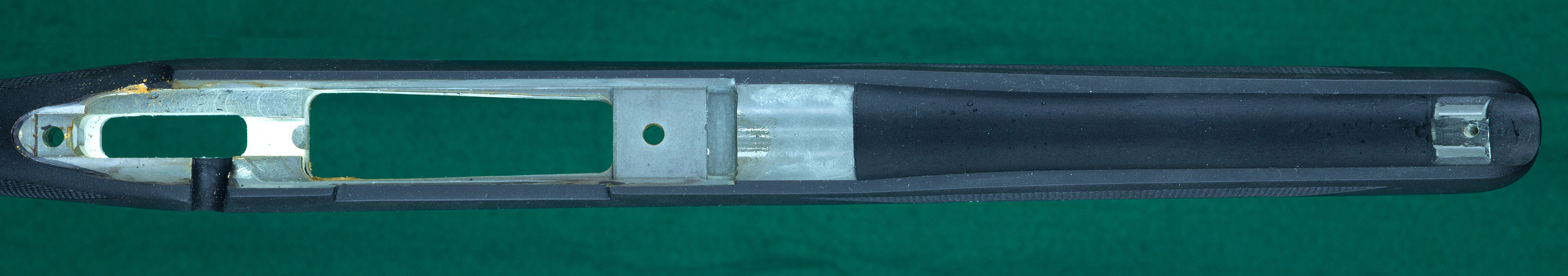 | re-shaped rear tang and solid Blackburn bottom metal with hinged straddle |