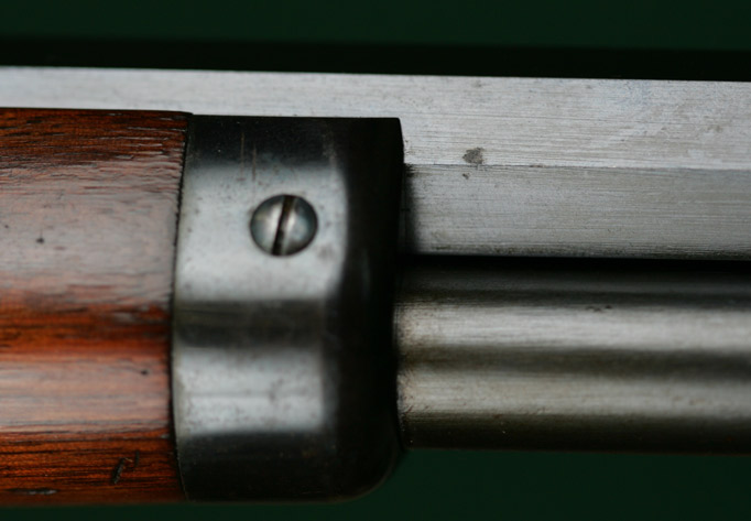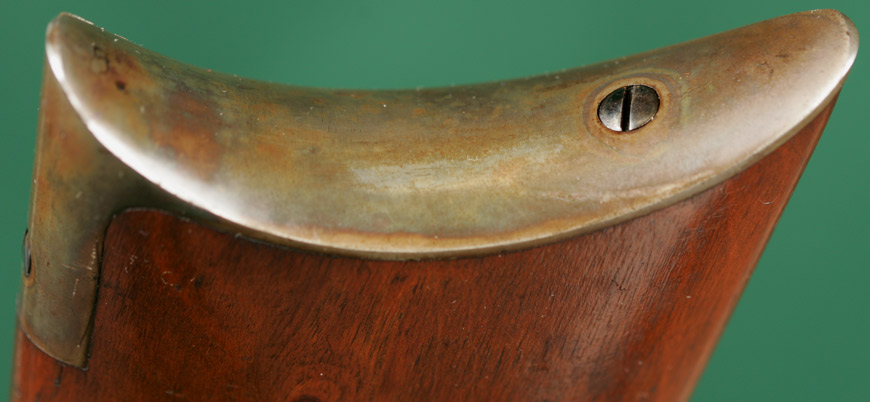 | Straight grip stock with steel crescent buttplate. Mfd ca 1905. 99% barrel |