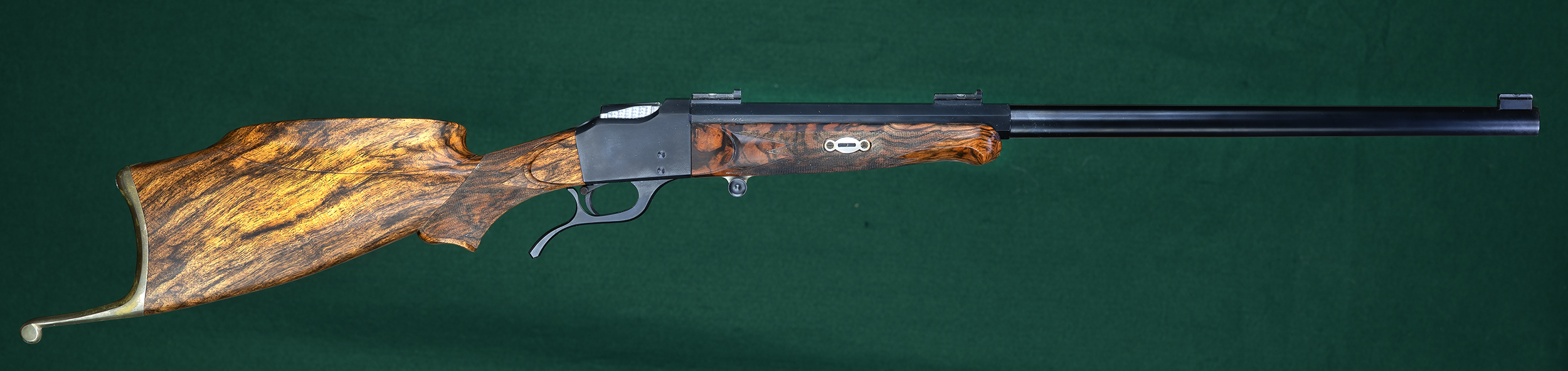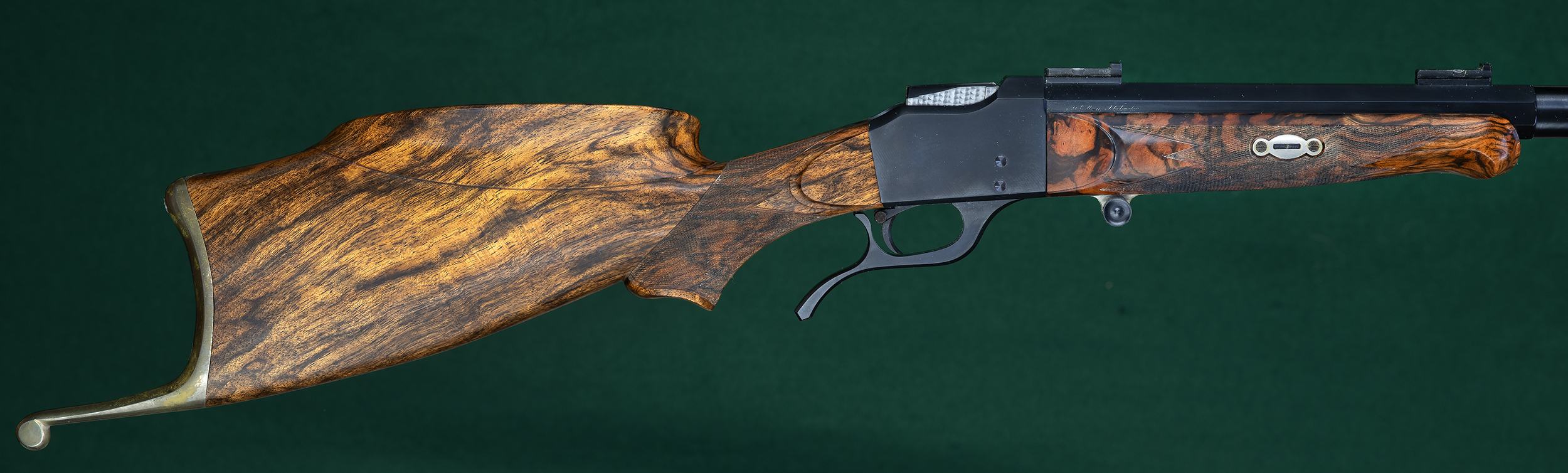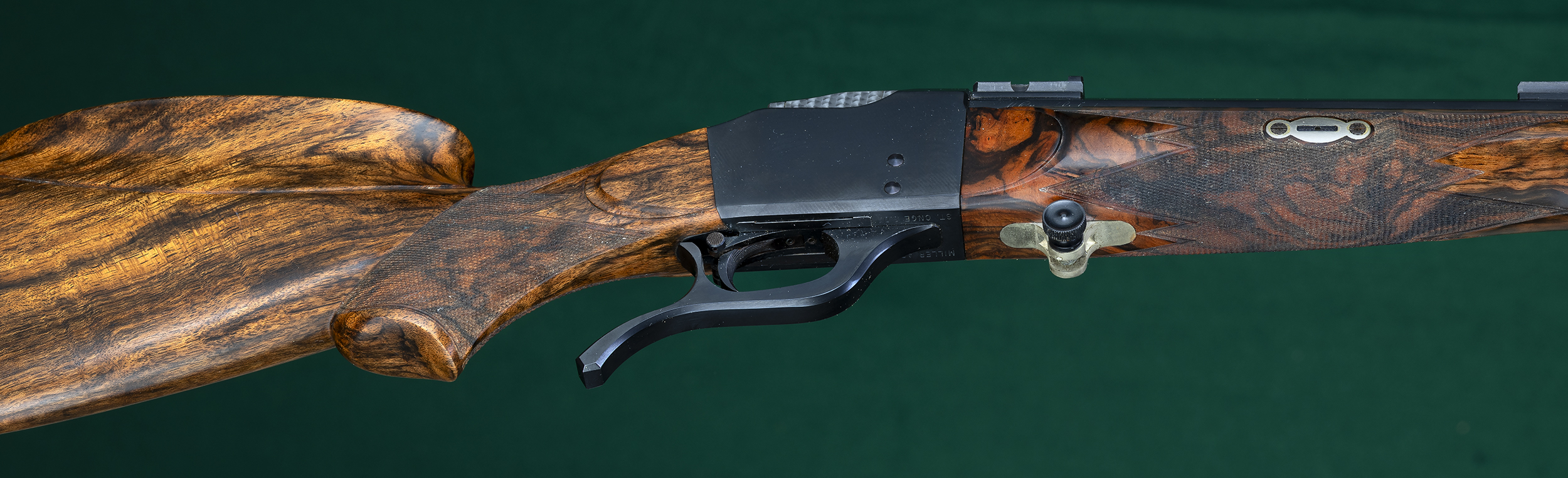 | | perch-belly buttstock, and brass Scheutzen buttplate. Miller Arms action, |