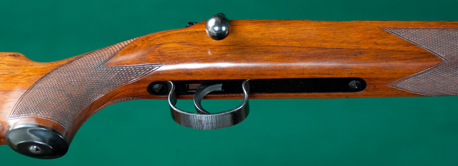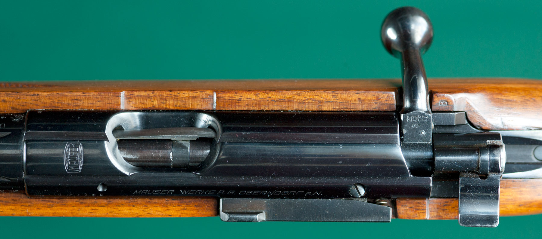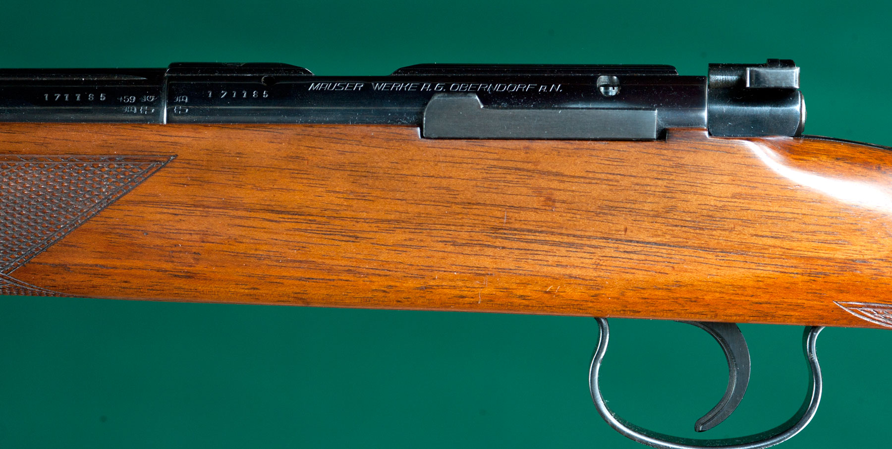 | pattern checkering, sling swivels, capped pistol grip, original Mauser banner |