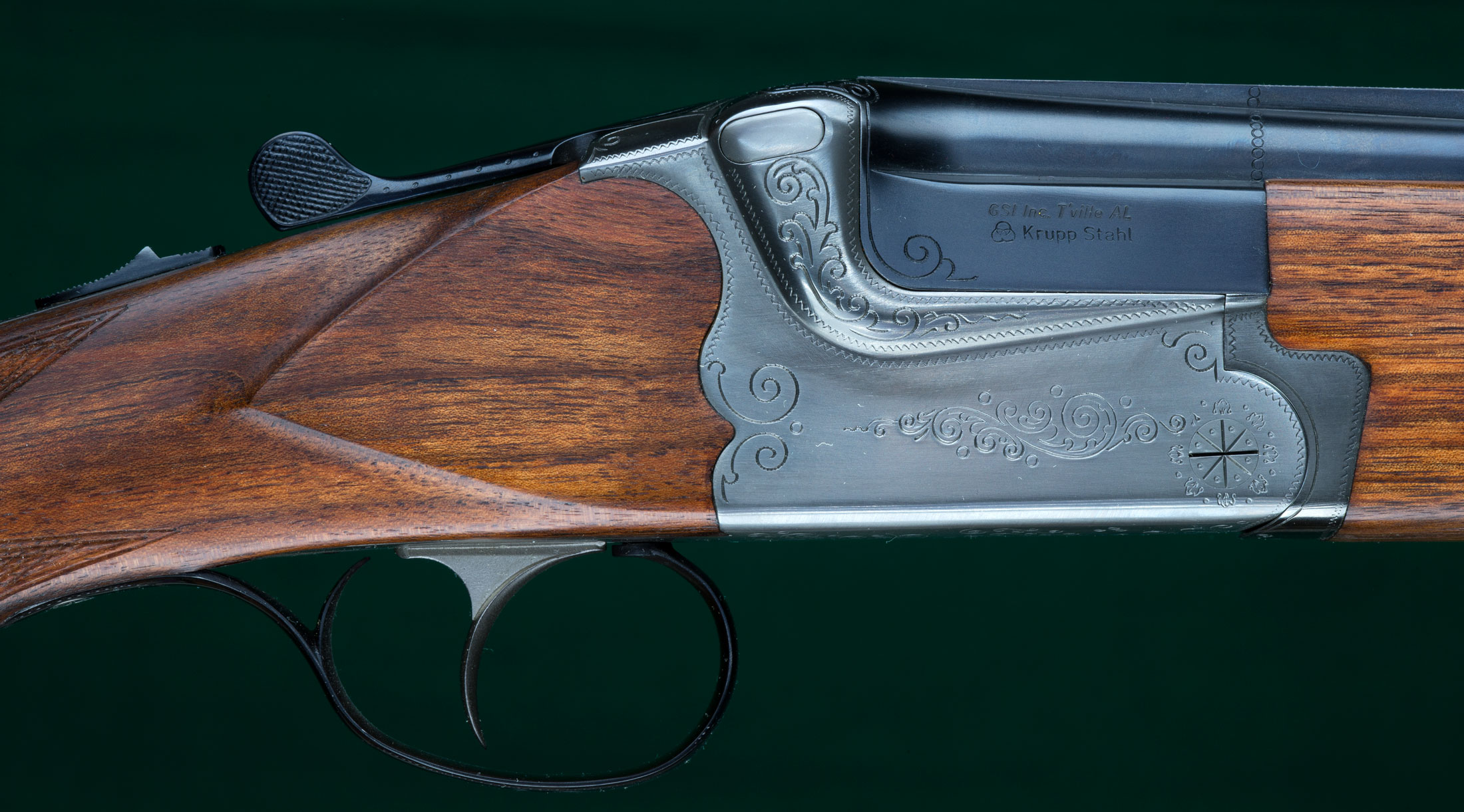 24" O/U barrels of Krupp steel with ramp front sight, matted half rib and 1 standing |