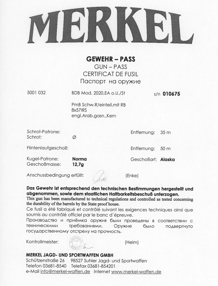 Kersten locks, manual top tang safety, and hold-open toplever. Weight: 7lbs, 11oz. |