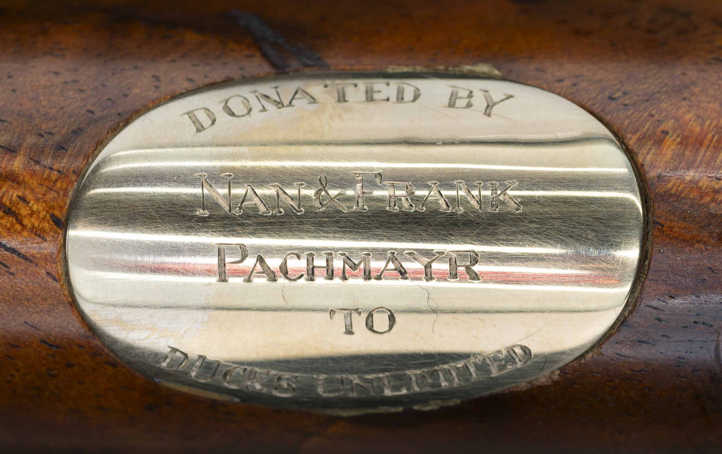 | | gold oval engraved: Donated to Ducks Unlimited by Nancy & Frank |