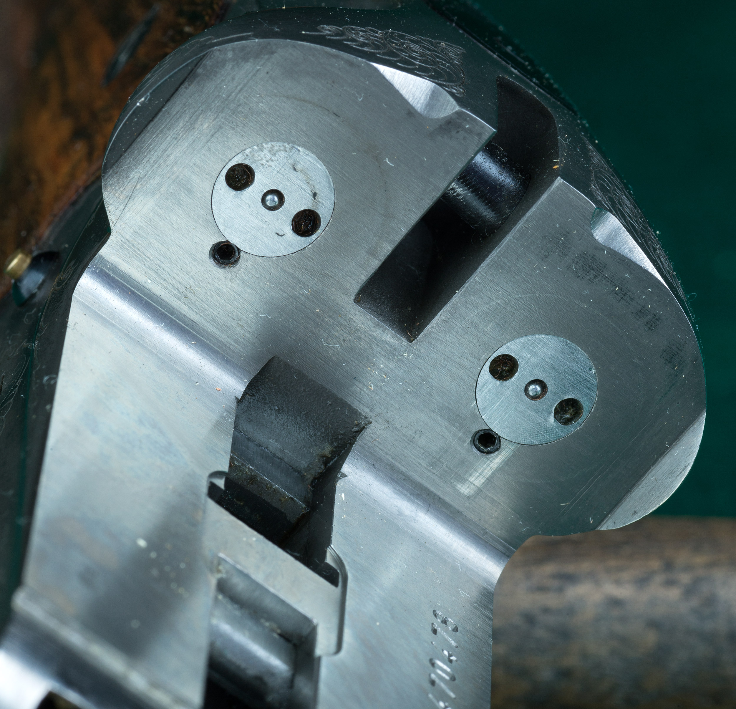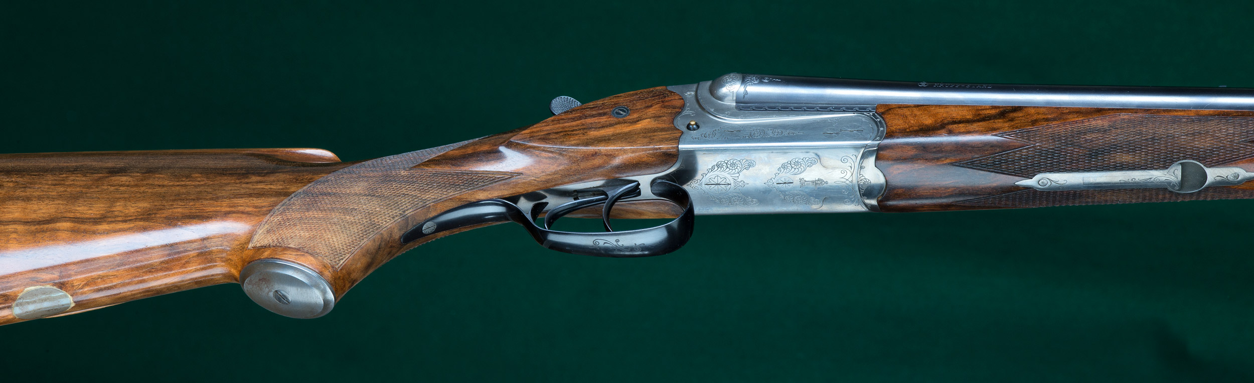 | casehardened, light scroll engraved, scalloped, bolstered receiver with side |