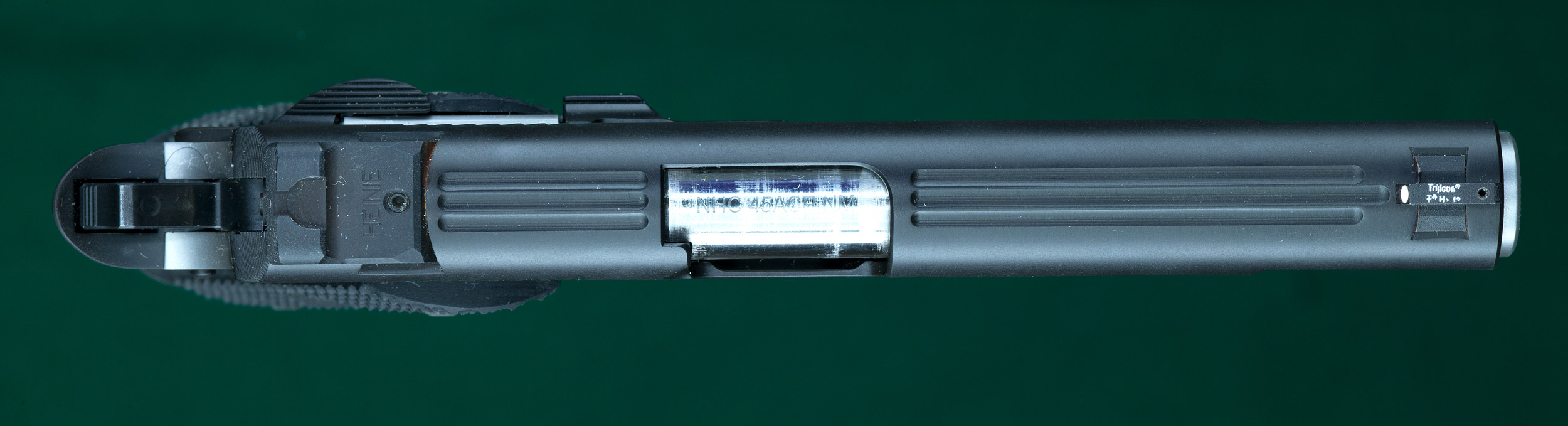 | | serrations. Falcon cut on the front of the slide. Heinie Ledge Straight Eight |