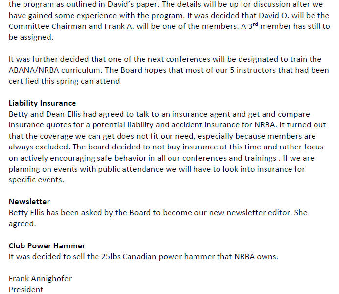 NRBA Home Blacksmith News Board of Directors Past Conferences Future Conferences Library Touchmarks NRBA Articles Membership Application Links