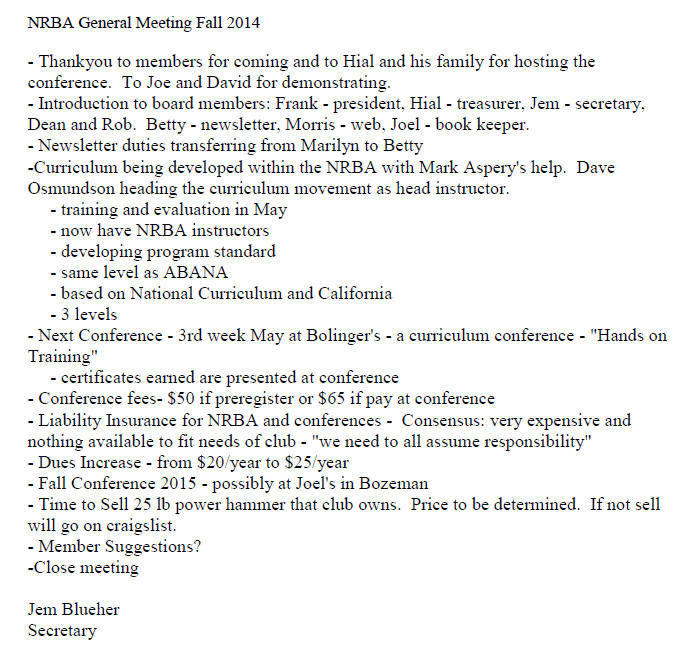 NRBA Home Blacksmith News Board of Directors Past Conferences Future Conferences Library Touchmarks NRBA Articles Membership Application Links
