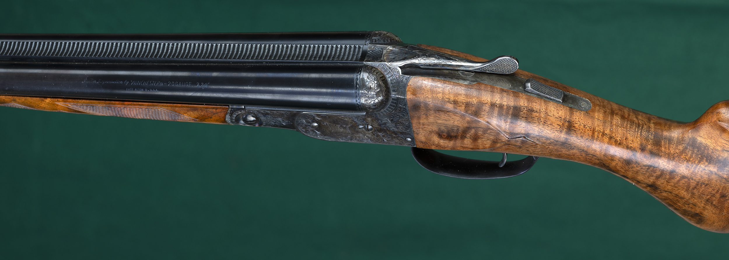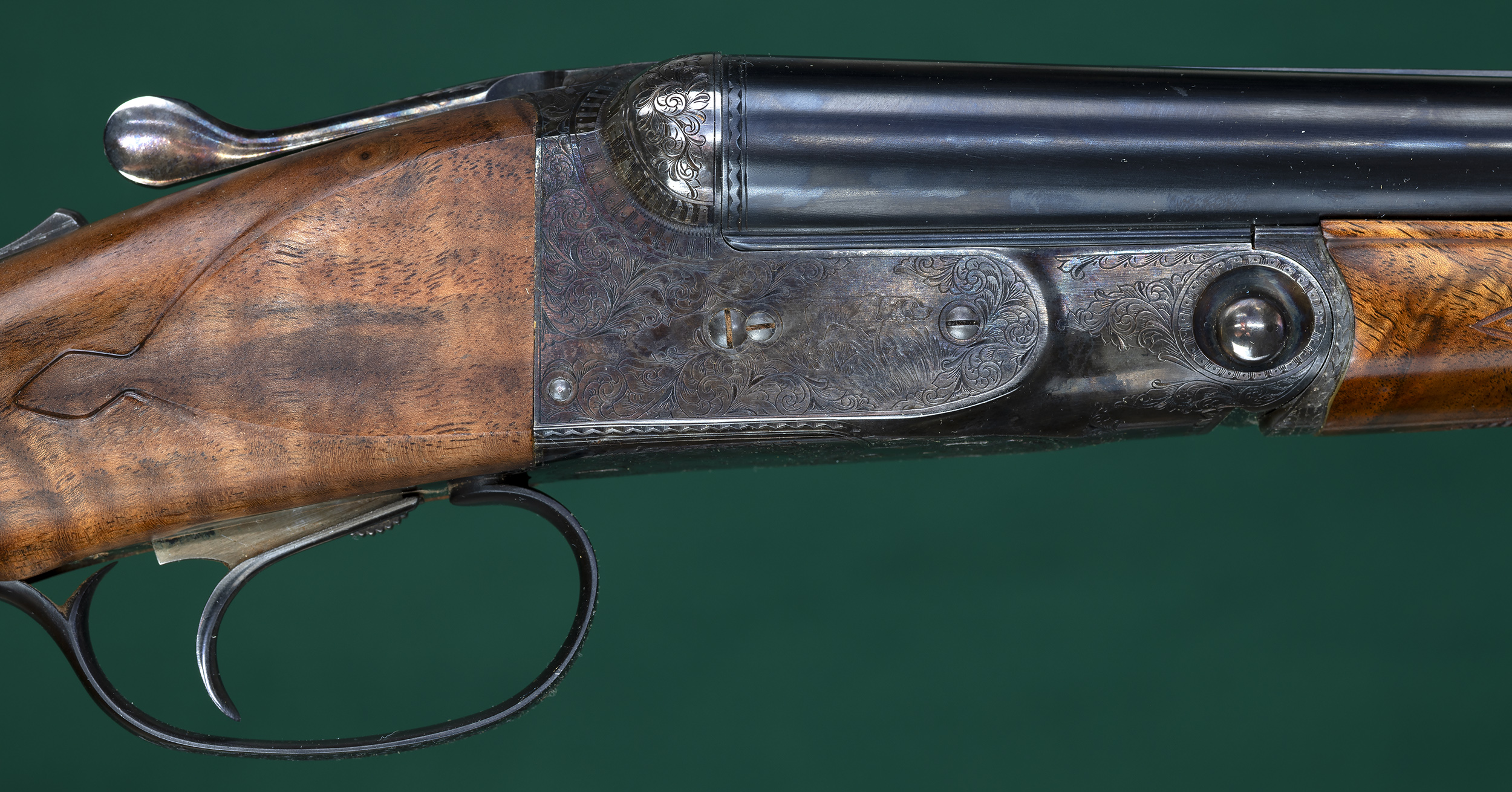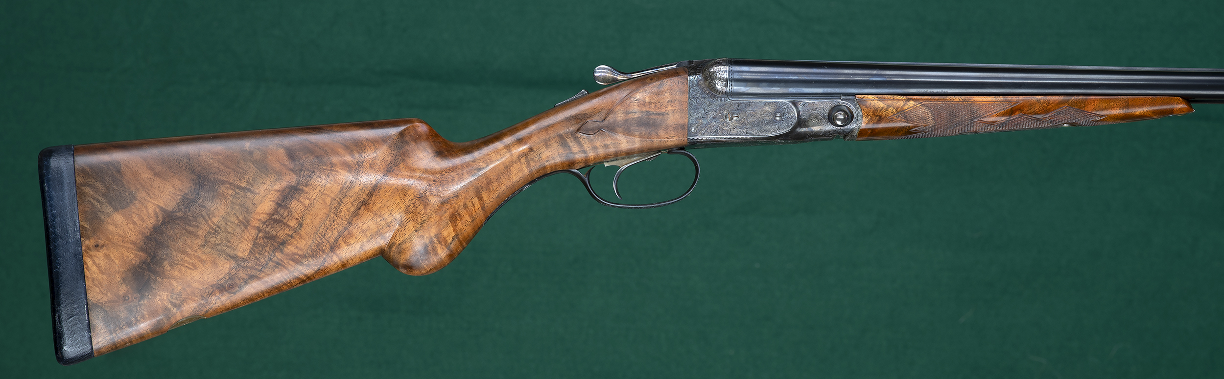 | Original splinter forend with Anson pull-down latch and point-pattern |