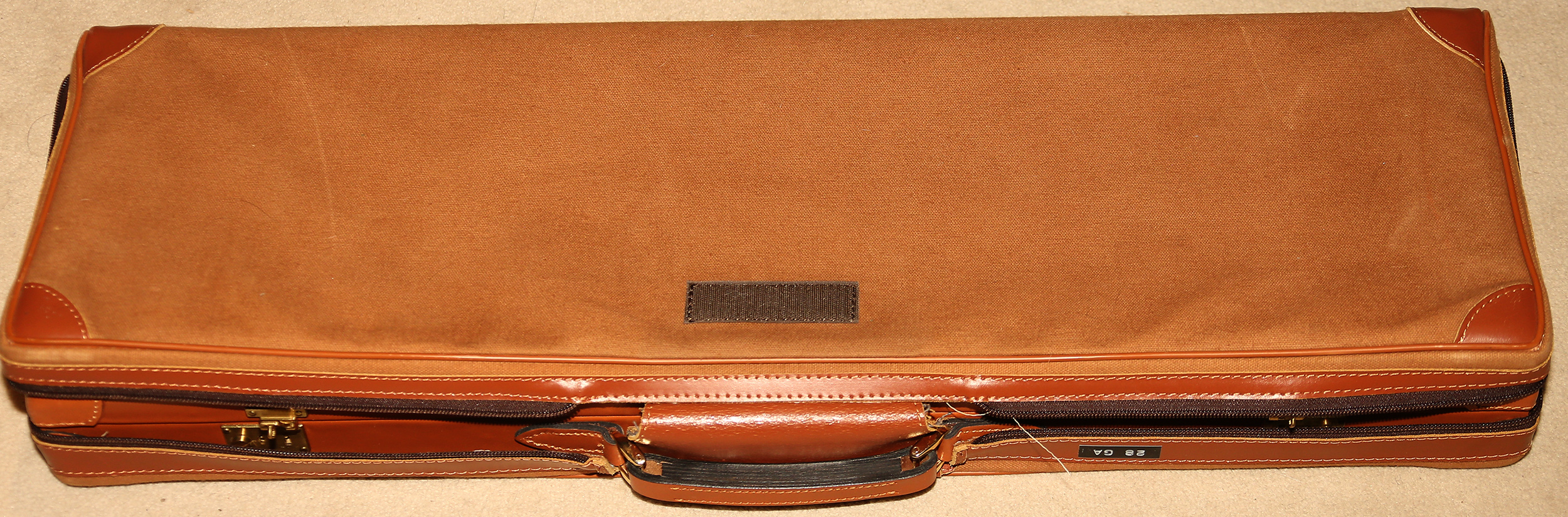 | casehardening colors. In maker's leather case with snap caps and canvas |