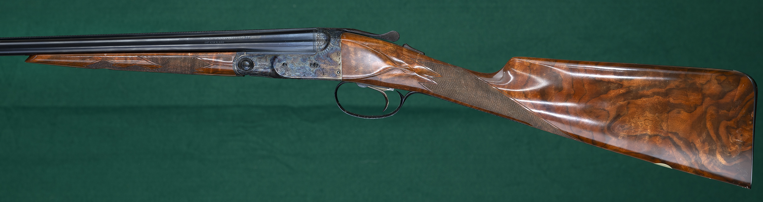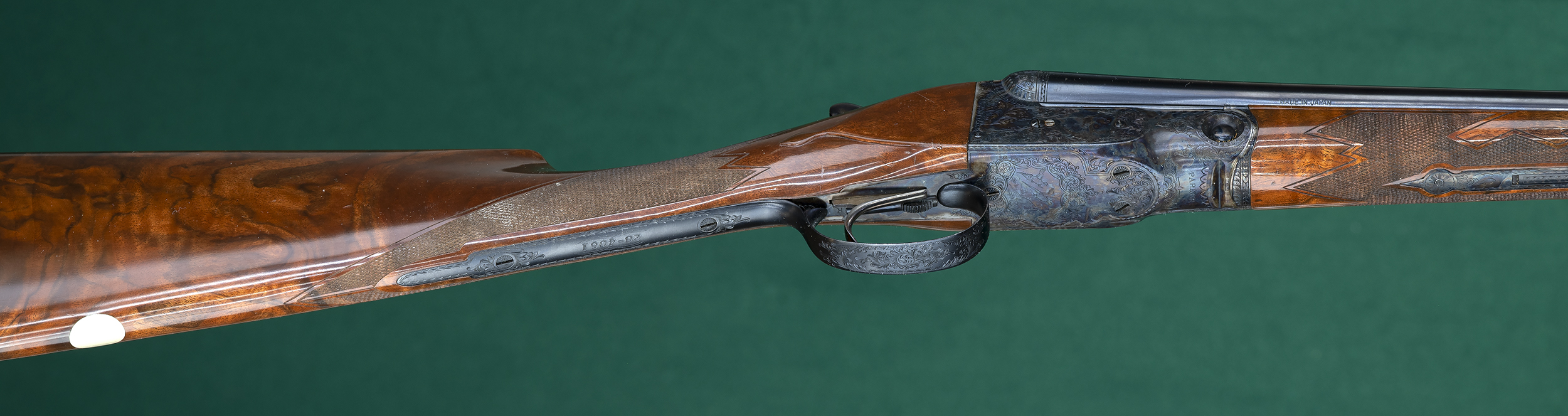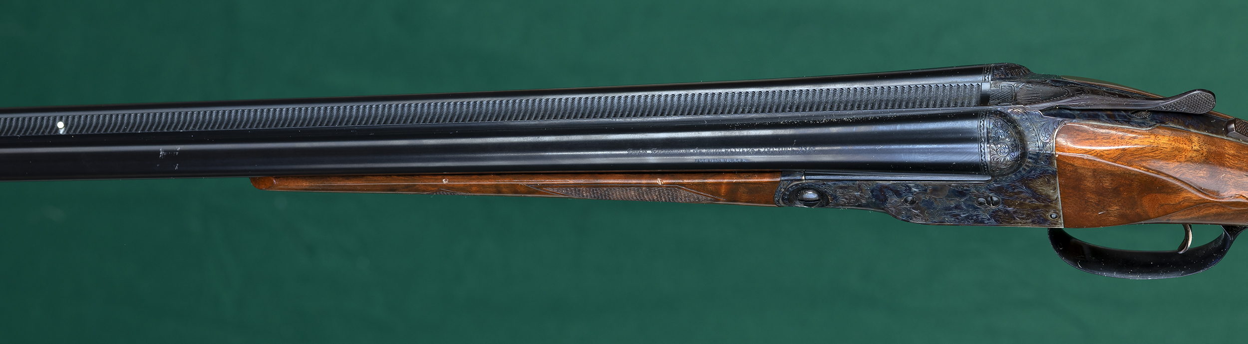 | walnut stocks with Deeley-latched splinter forend, straight English grip, |