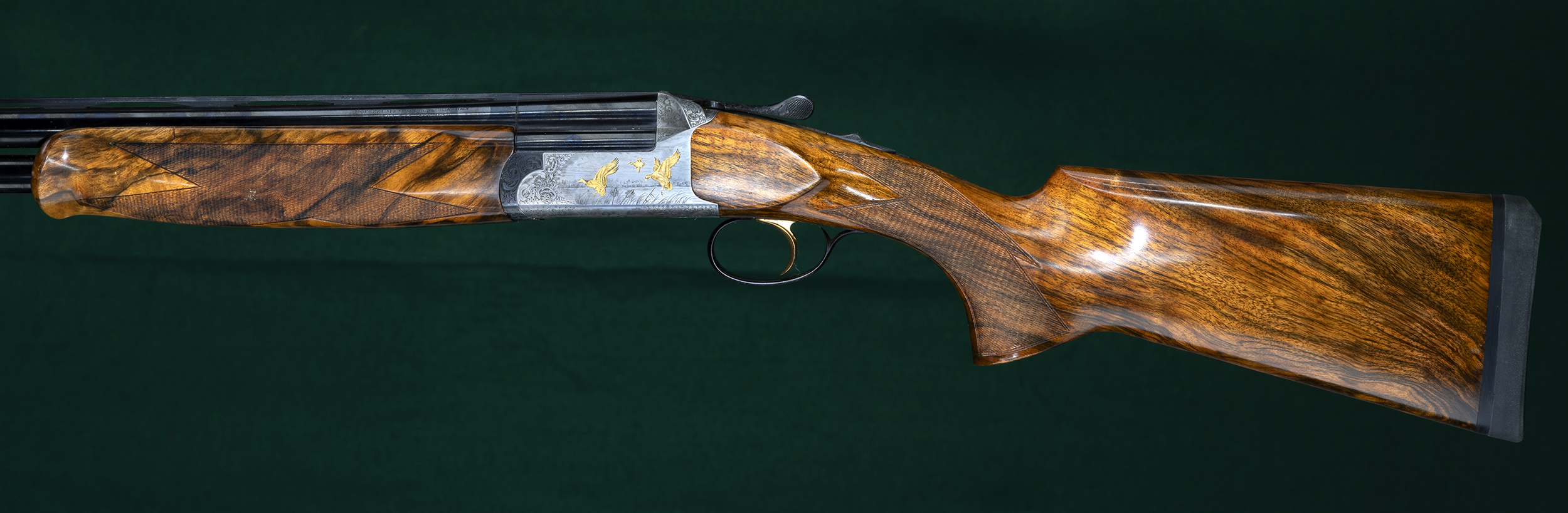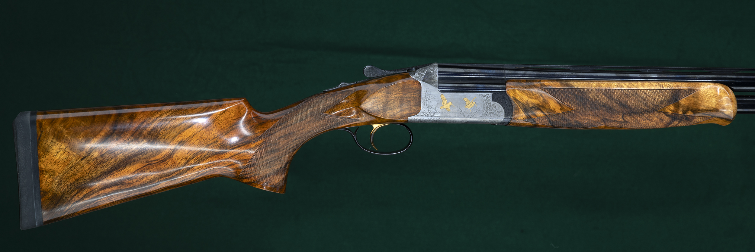 | | 27 1/2" O/U barrels with matted ventilated top rib, single nickel-silver front |