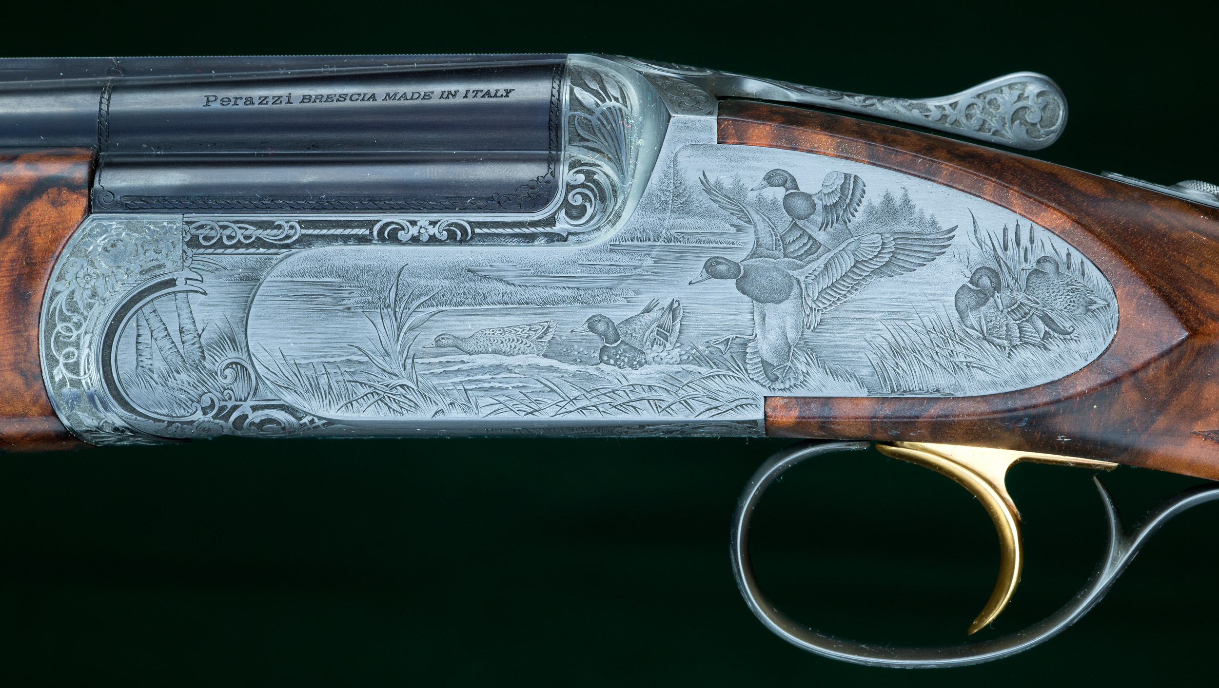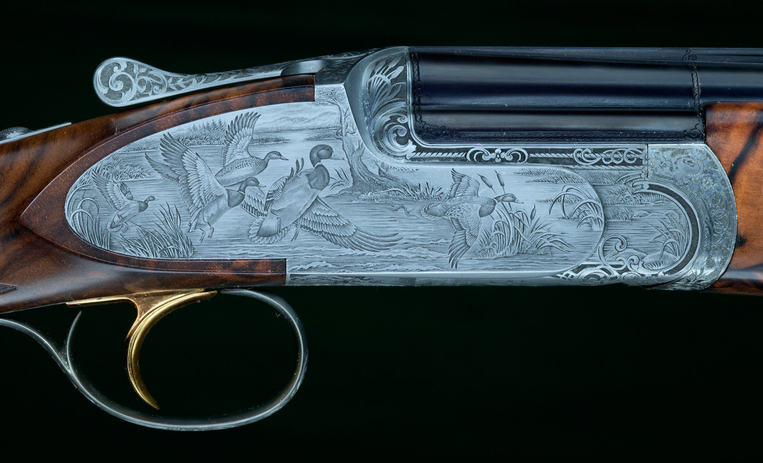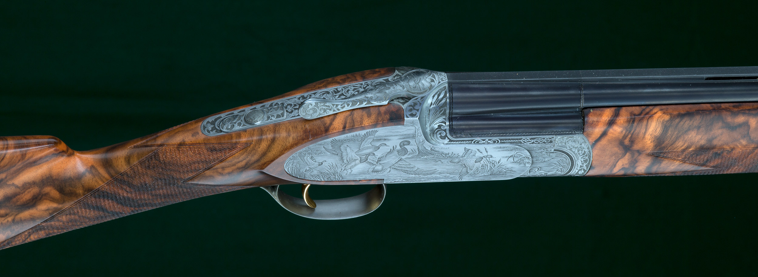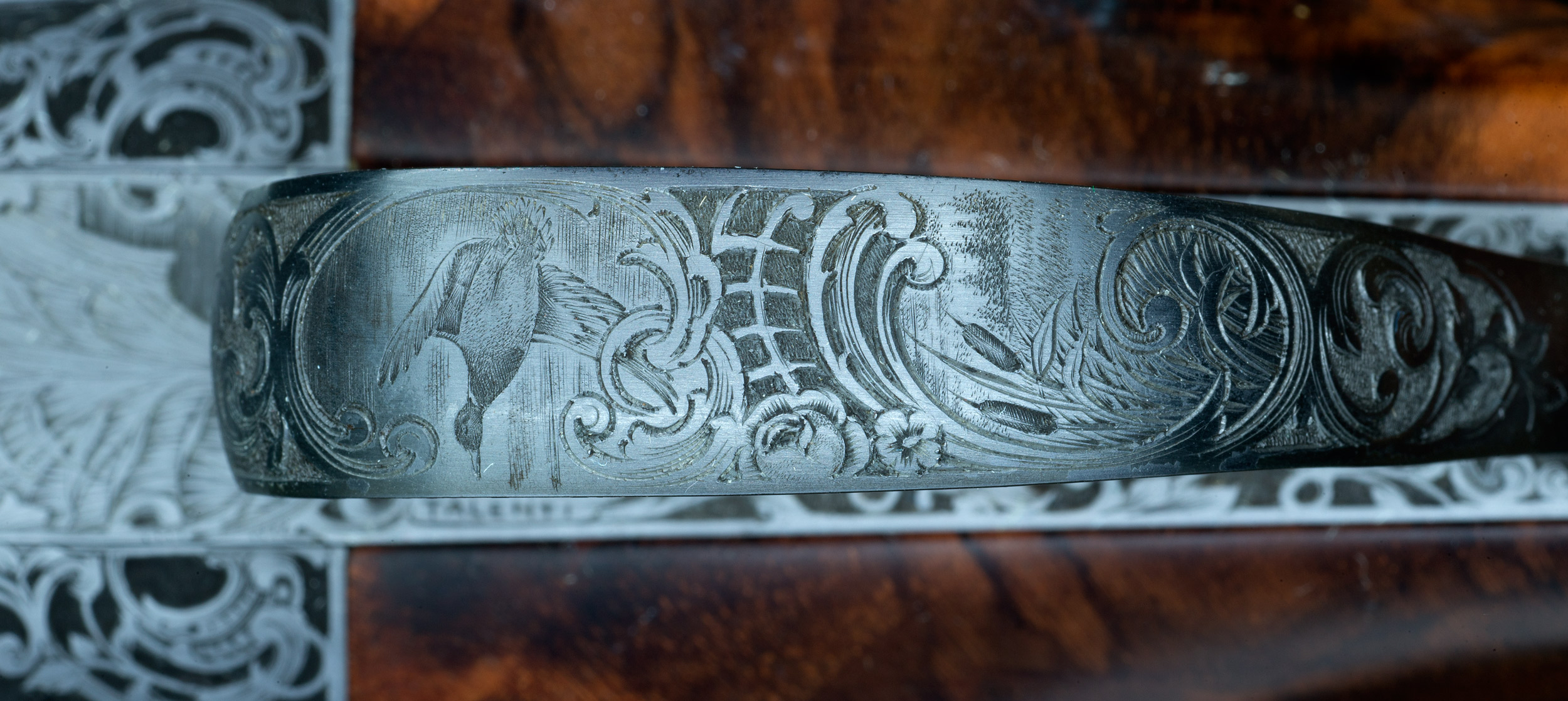 | game scene engraving by Talenti on coin-finished sideplated receiver with |