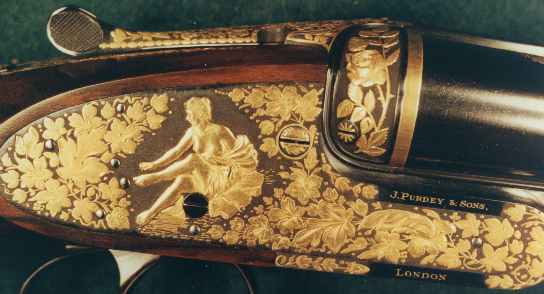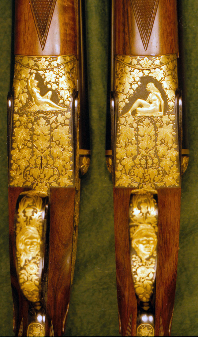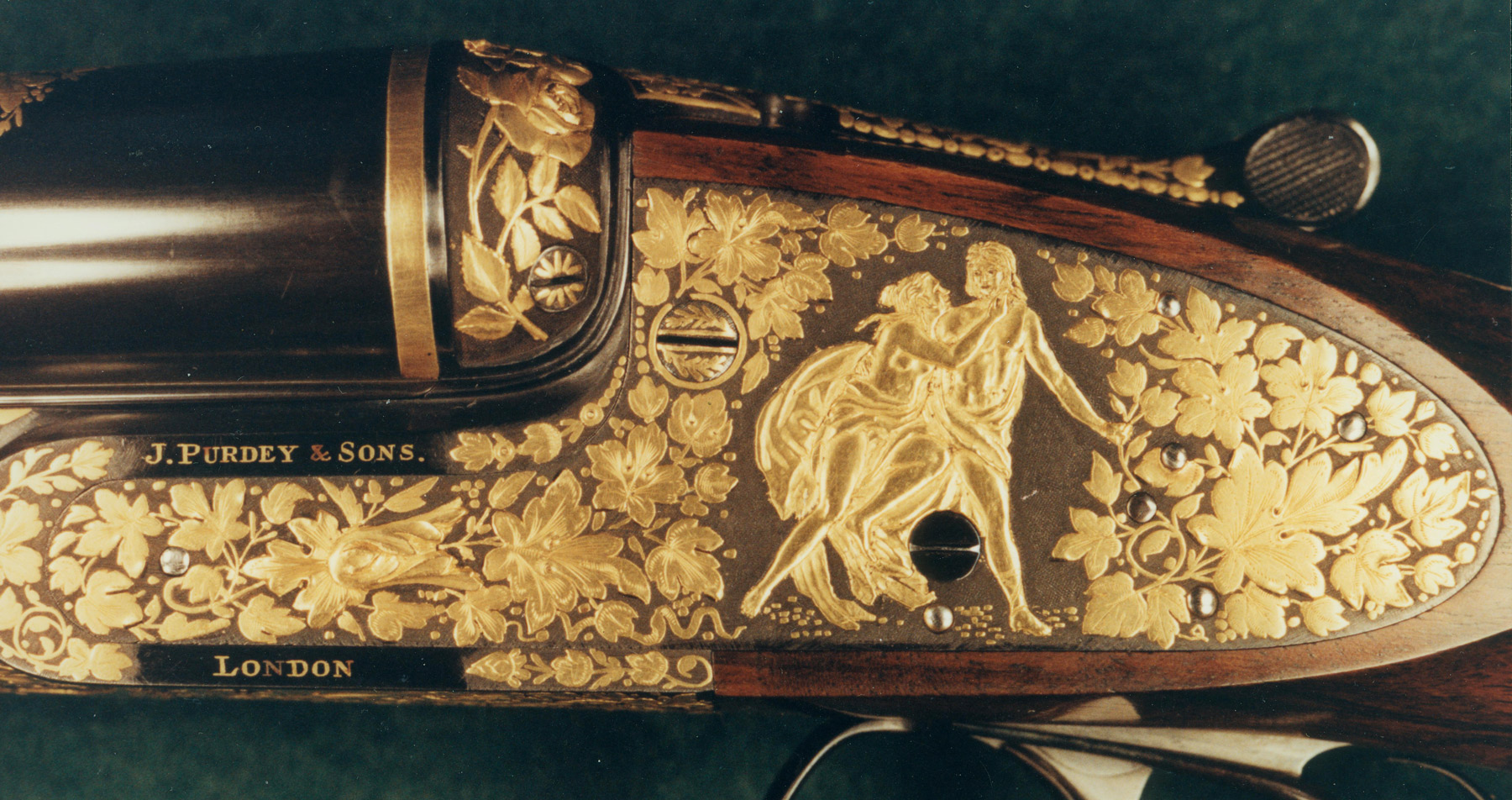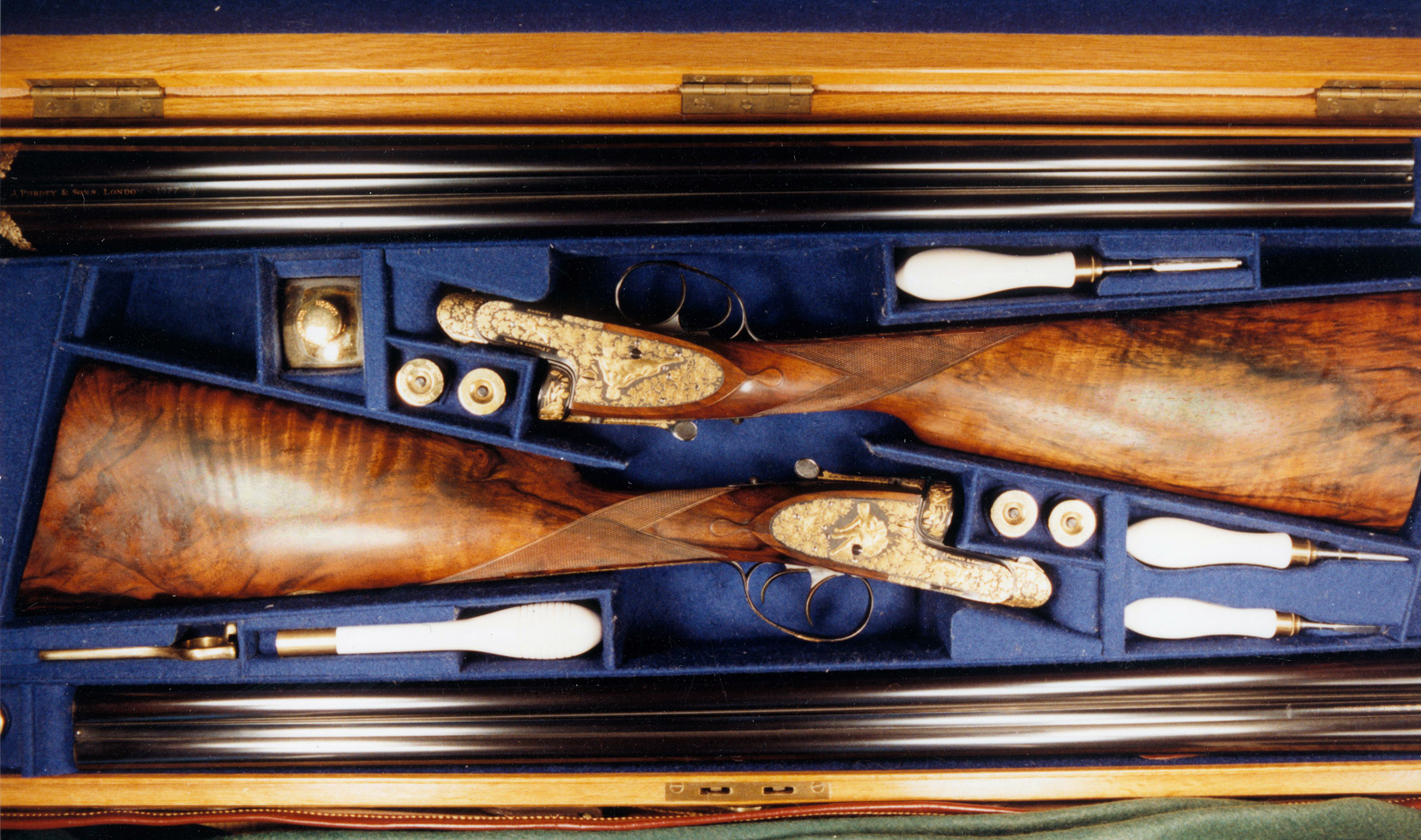 J Purdey & Sons, Matched Cased Pair 12 Gauge Side-by-sides, Gold Inlaid by K C Hunt.