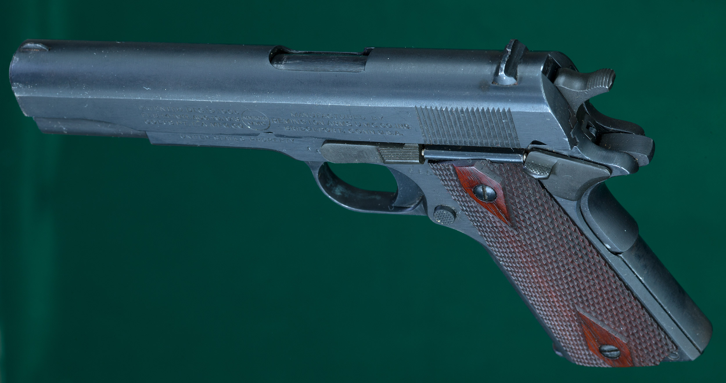 | | mainspring housing. Two-line model marking on right side of slide. E above |