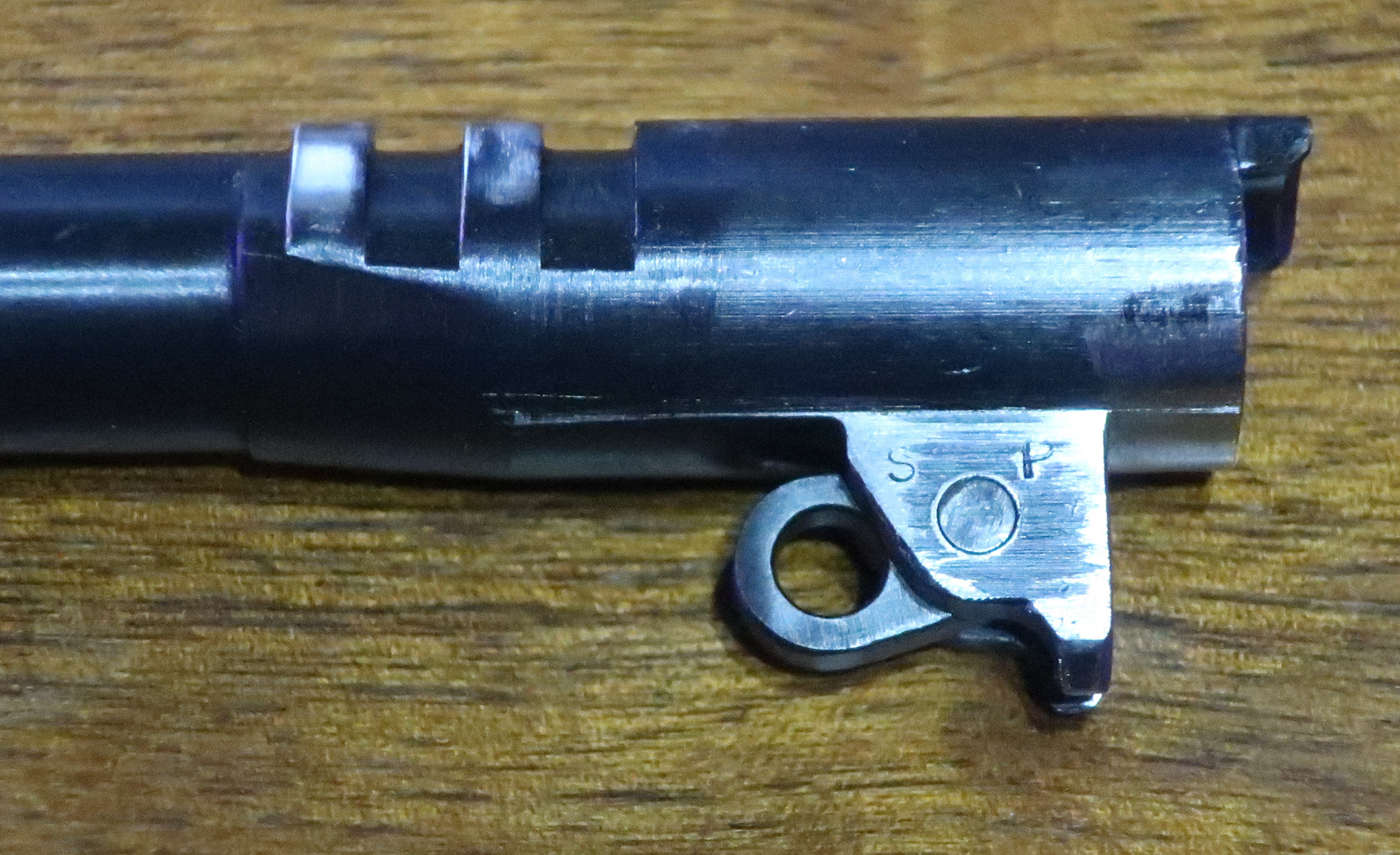That's a numeral "1" nearly horizontal, stamped on the left, top of the barrel lug.