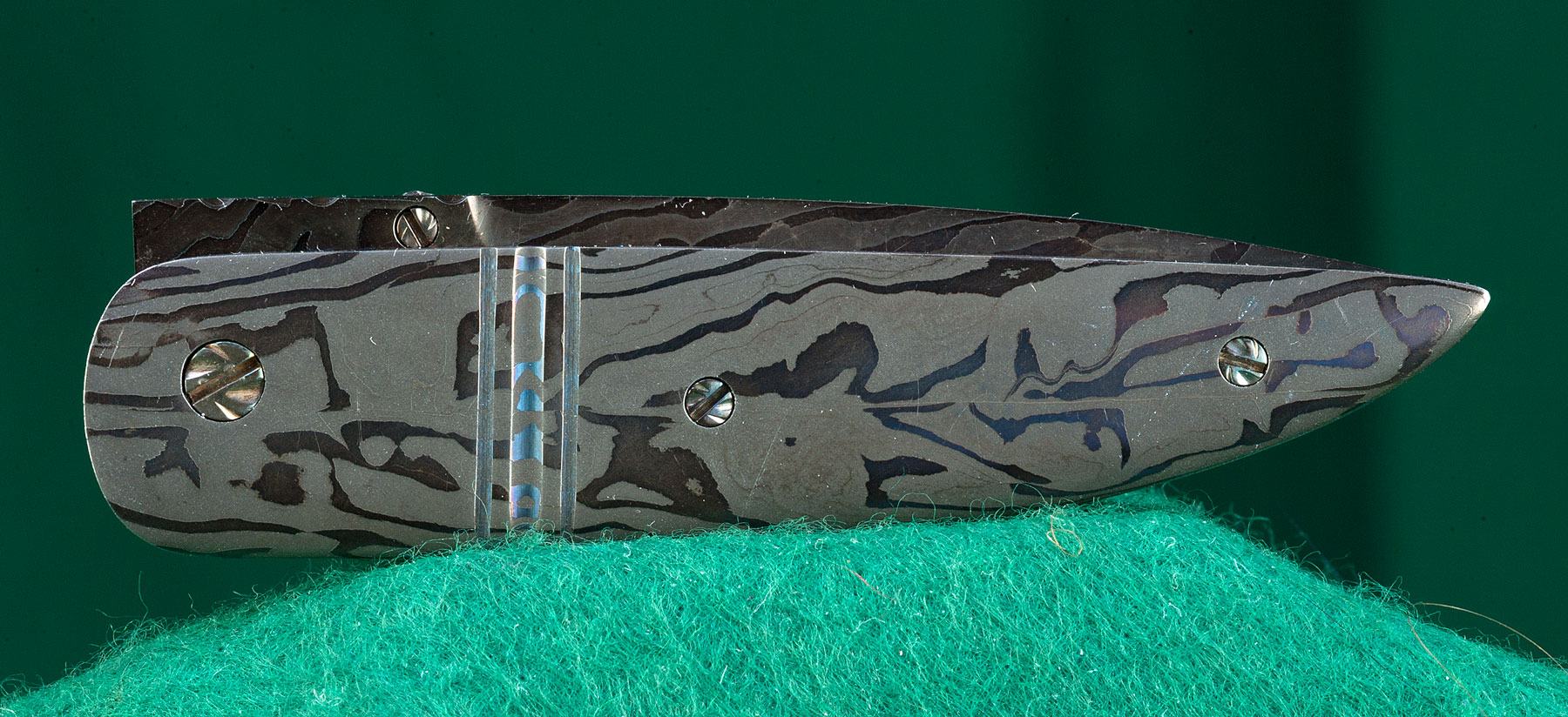 My name is Rick Dunkerley, and I am an ABS Mastersmith. I have been making custom knives since 1984, and have been a full time knife maker since 1996. I make folders and fixed blades of all diffrent types. I am most intrested in Damascus knives and enjoy making my own diffrent patterns. These knives are one-of-a-kind. Even similar designs will be different, as the materials will be different. I do not repeat my mosaic patterns, so only a few knives are made with a particular damascus design. My knives are entirely handmade by me. From the time I light the forge through the last detail, no one else has a hand in a Dunkerley knife. I only use the best materials and am constantly experimenting with new techniques to provide the collector with a truly unique knife.